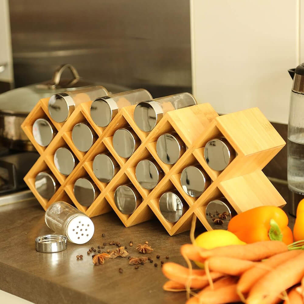 Dobd fel konyhád ezzel a stílusos és praktikus bambusz fűszertartó állvánnyal, és élvezd a rendszerezett főzés örömét minden nap!