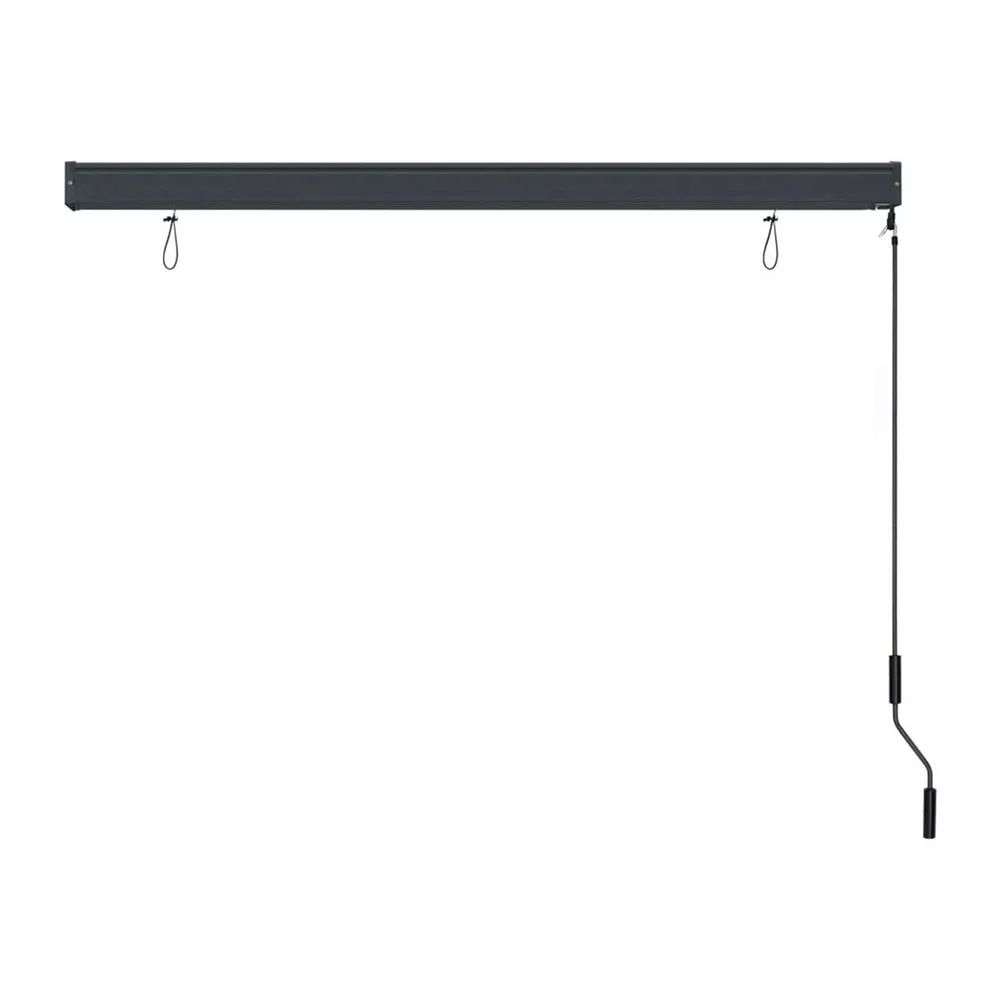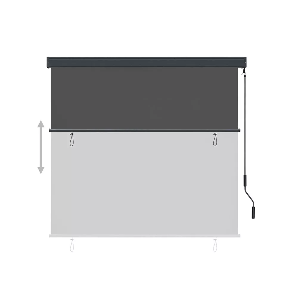 A 235 centiméteres árnyékoló függőleges irányban le- és felcsavarható a tekerőkar segítségével. Amikor tűzni kezd a nap, pár mozdulattal leengedheted. Elég hosszú ahhoz, hogy a földig leeresztve teljesen leárnyékolja a teraszt. A napellenzőt alul könnyedén rögzítheted, hogy ne fújja a szél.