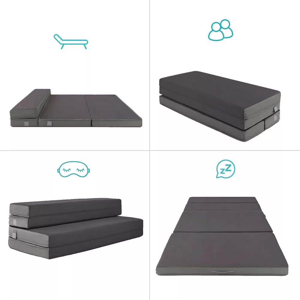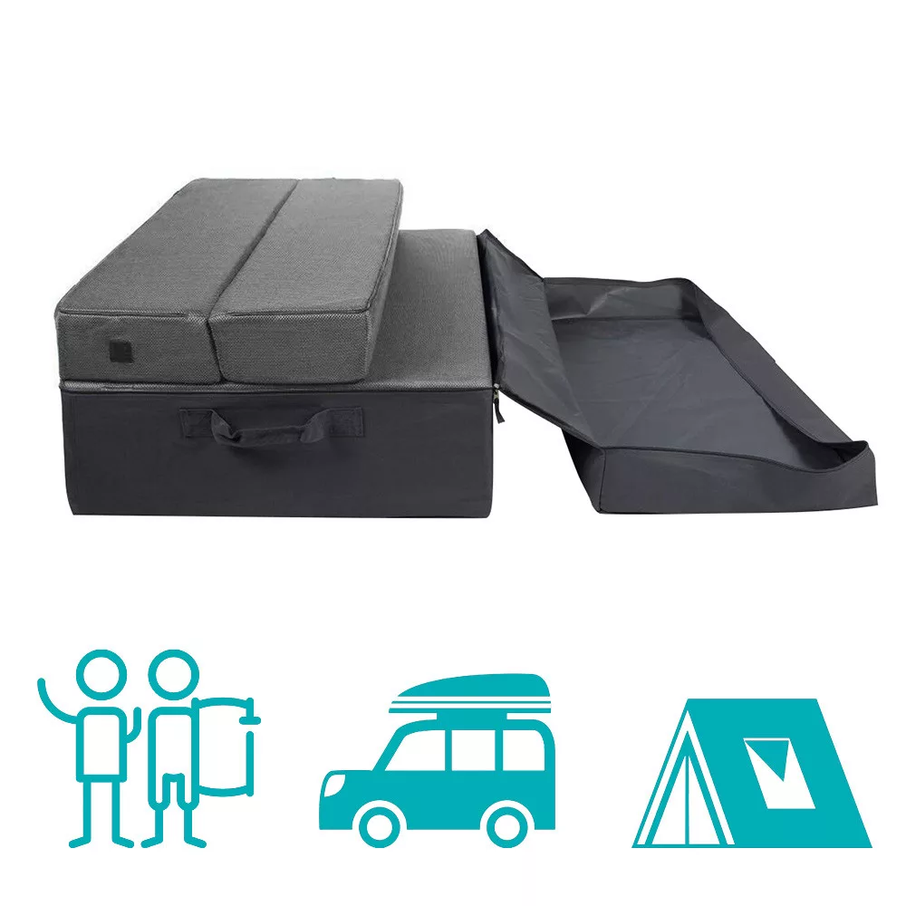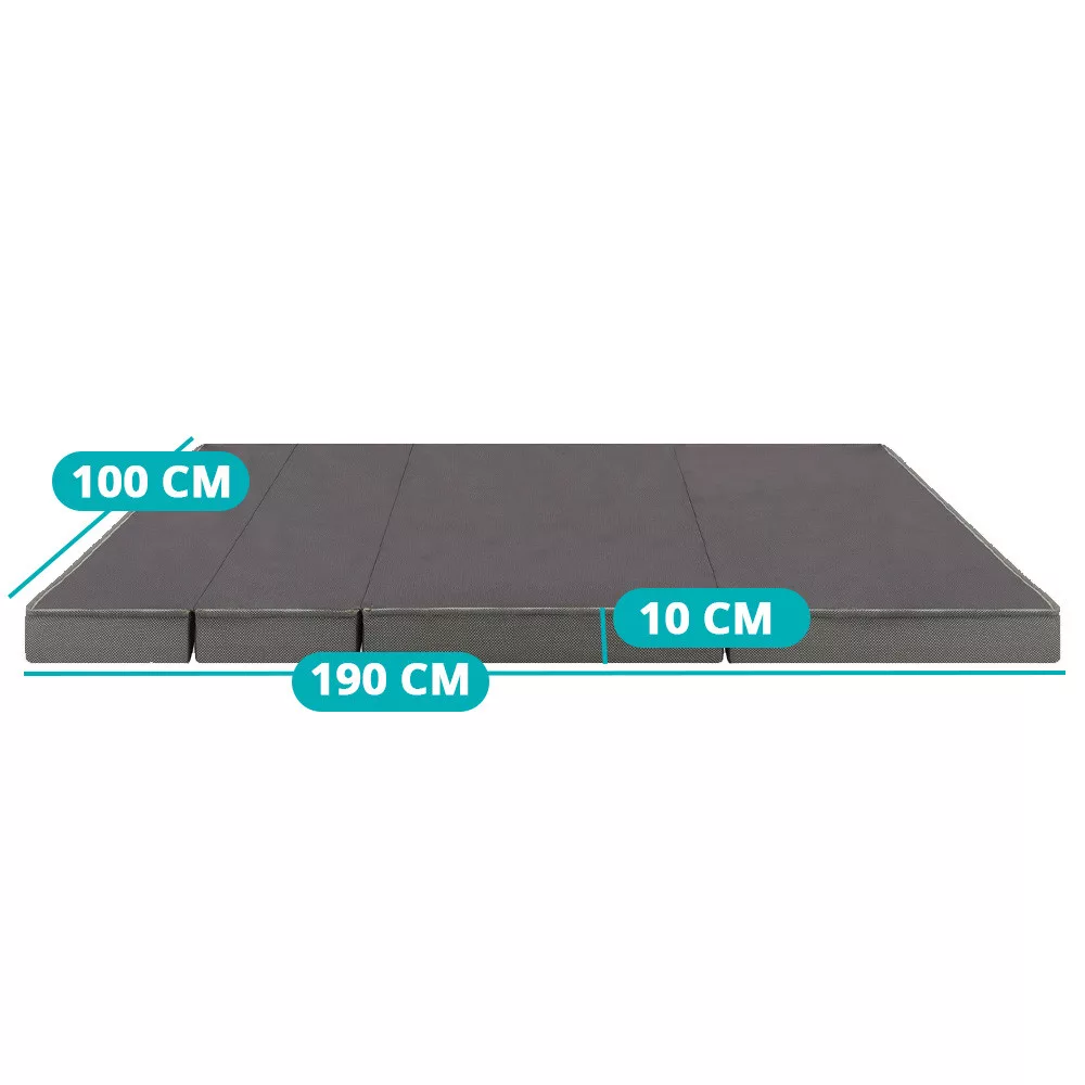Vidd magaddal bárhová hordozható, összehajtható matracunkat hordtáskában a pihentető az alváshoz, akár neked van rá szükséged vagy esetleg vendég érkezik. Nem csupán fekhelyként funkcionálhat, összehajtva ülőhelynek vagy háttámlás "kanapénak" is használhatod. Összehajtható ezért kis helyen is elfér, hordtáskájával pedig bárhová magaddal viheted. 10 cm vastag poliuretán anyagból készült, így biztosan kényelmes pihenést biztosít.