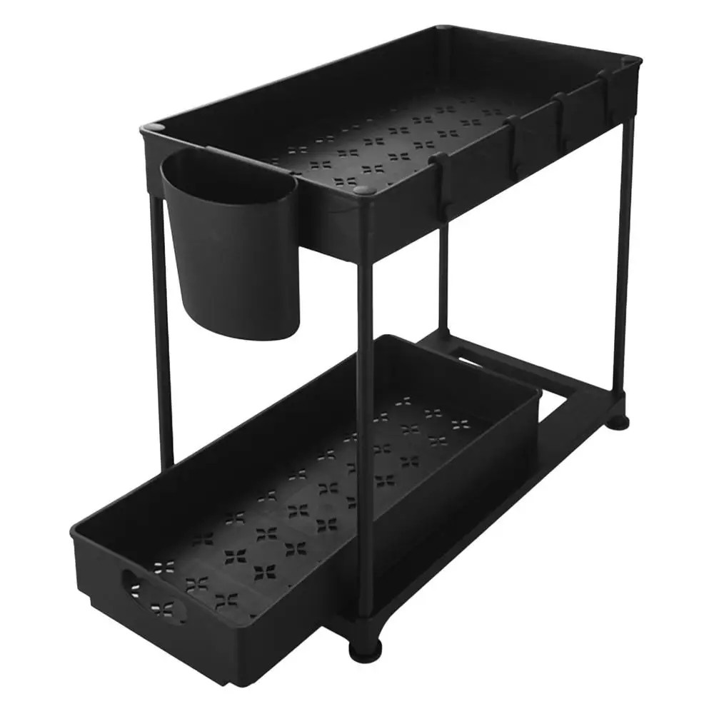 Rend a lelke mindennek, tartja a mondás és mi sem lehetne nagyobb kihívás mint a konyhában lévő rengeteg kiegészítőnek megfelelő helyet találni. Mosogató alá szerelhető, így nem foglal sok helyet amivel ideális megoldás a legkisebb hellyel rendelkező háziasszonyoknak is. Két nagy méretű tároló polcára helyezheted a holmit és az oldalsó tároló rekeszét is kihasználhatod például szivacs, szemetes zsák vagy egyéb kisebb kellékek tárolására. Strapabíró műanyagból készült, könnyen tisztítható így időtálló és praktikus megoldást biztosít.