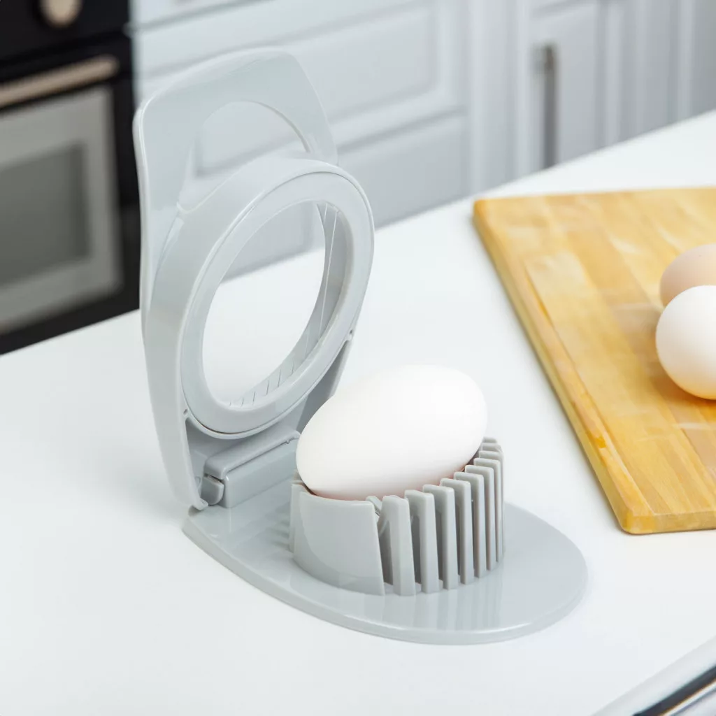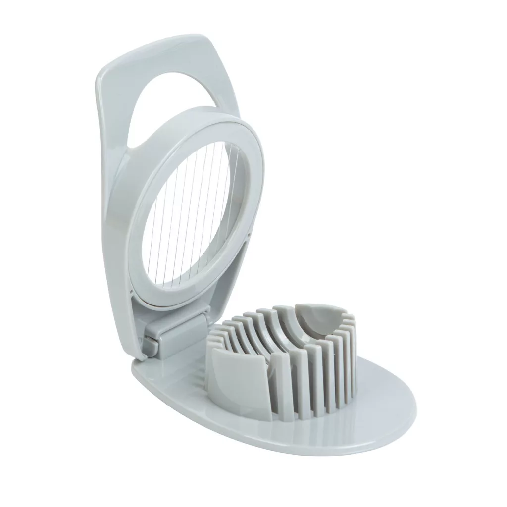 Keményre főtt tojások könnyed és hatékony szeletelésére szolgáló konyhai eszköz. Csak helyezze a tojást a szeletelőre és hajtsa rá a felső részt. A megfeszített drótok szabályos szeletekre vágják a tojást.