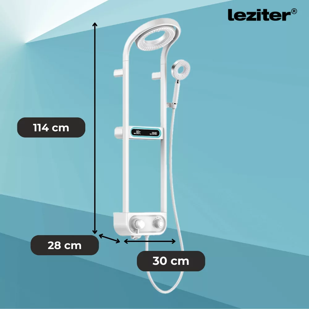A Leziter Tropic zuhanyszett nemcsak digitális és intelligens, de stílusos és időtálló is. Alumíniumból, sárgarézből és ABS műanyagból készült, így ellenáll a vízkőnek és a napi használatnak, hosszú távon is megbízható társ a fürdőszobában. A termék elegáns fehér színben érhető el, de választható szürke és fehér változatban is, hogy tökéletesen illeszkedjen bármilyen fürdőszobai enteriőrbe. Letisztult, modern dizájnja igazi luxusérzetet visz otthonodba.