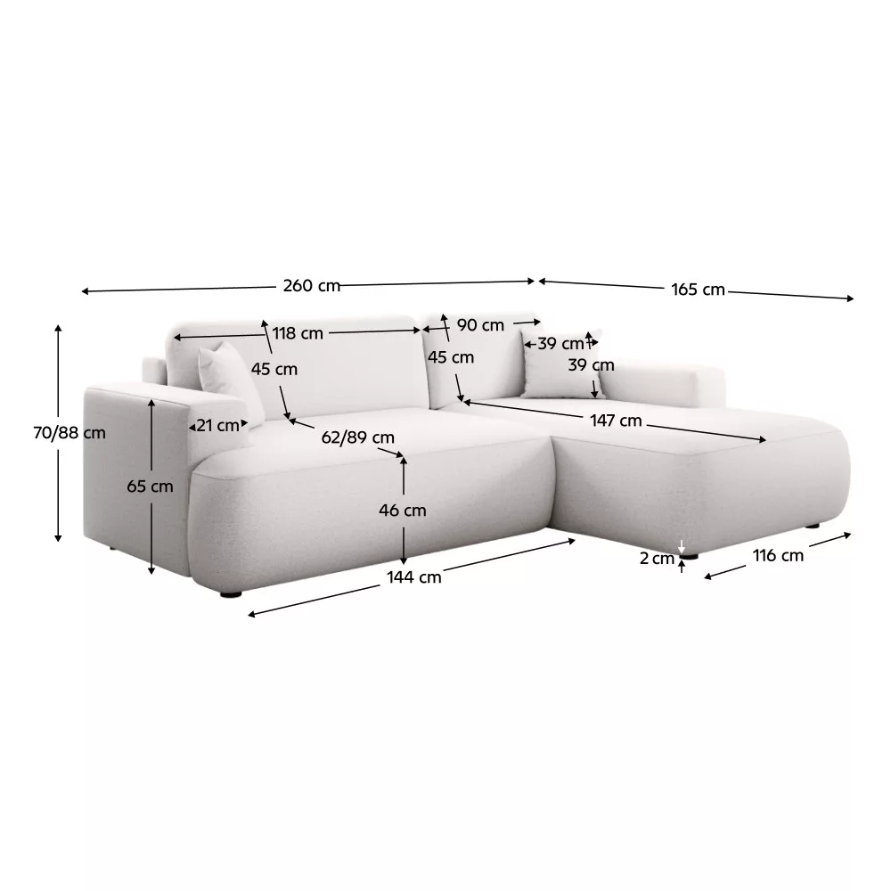 Méretek (SzxMéxMa): 260x165x70/88 cm
