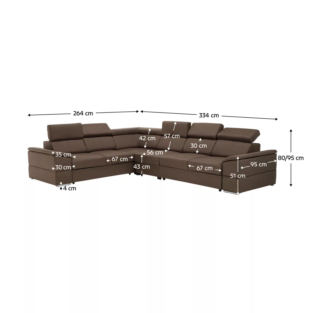 Az ülőgarnitúra magassága felemelt támasztékokkal: 95 cm