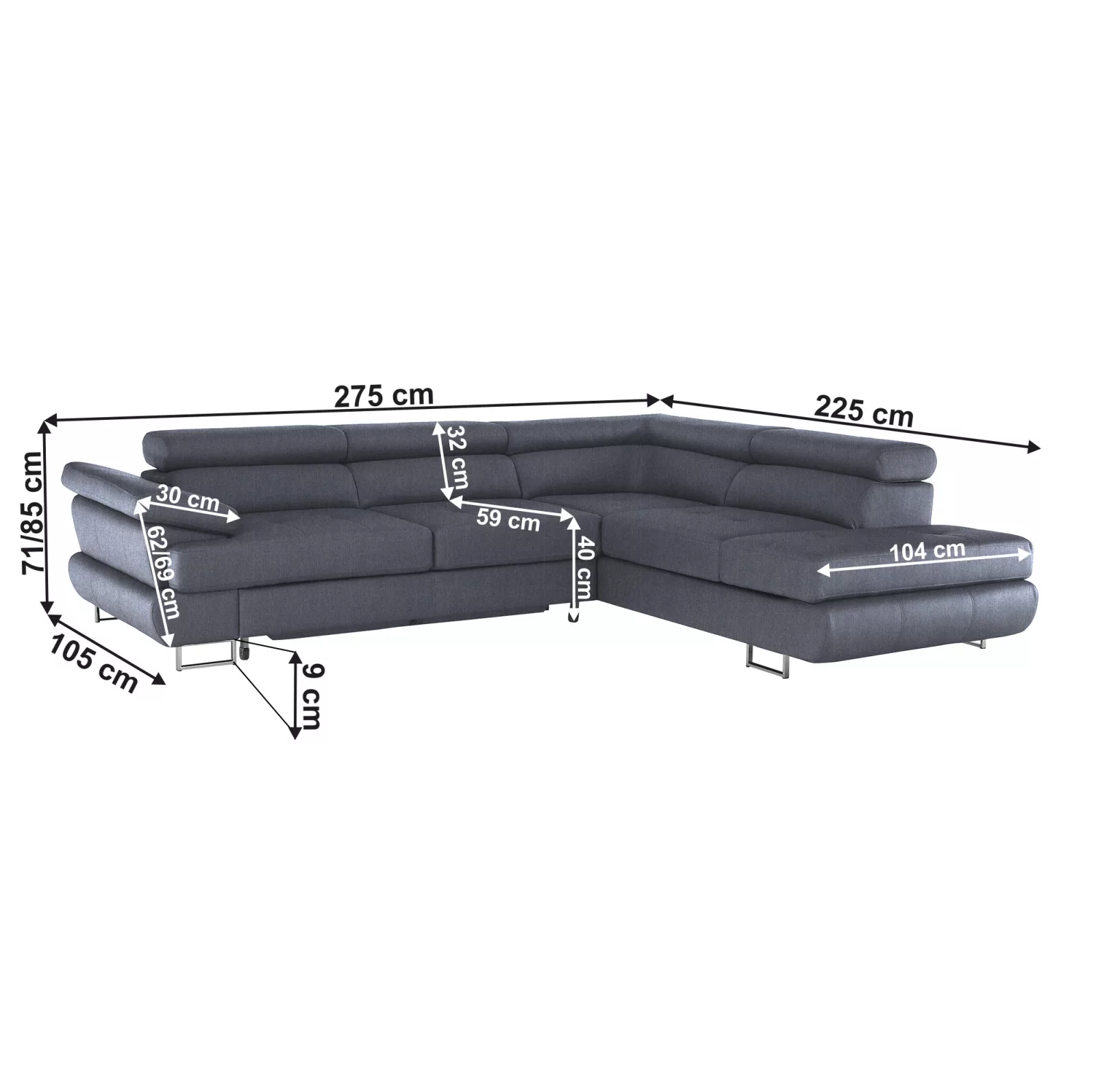 Méretek (SzxMéxMa): 275x225x71/85 cm.