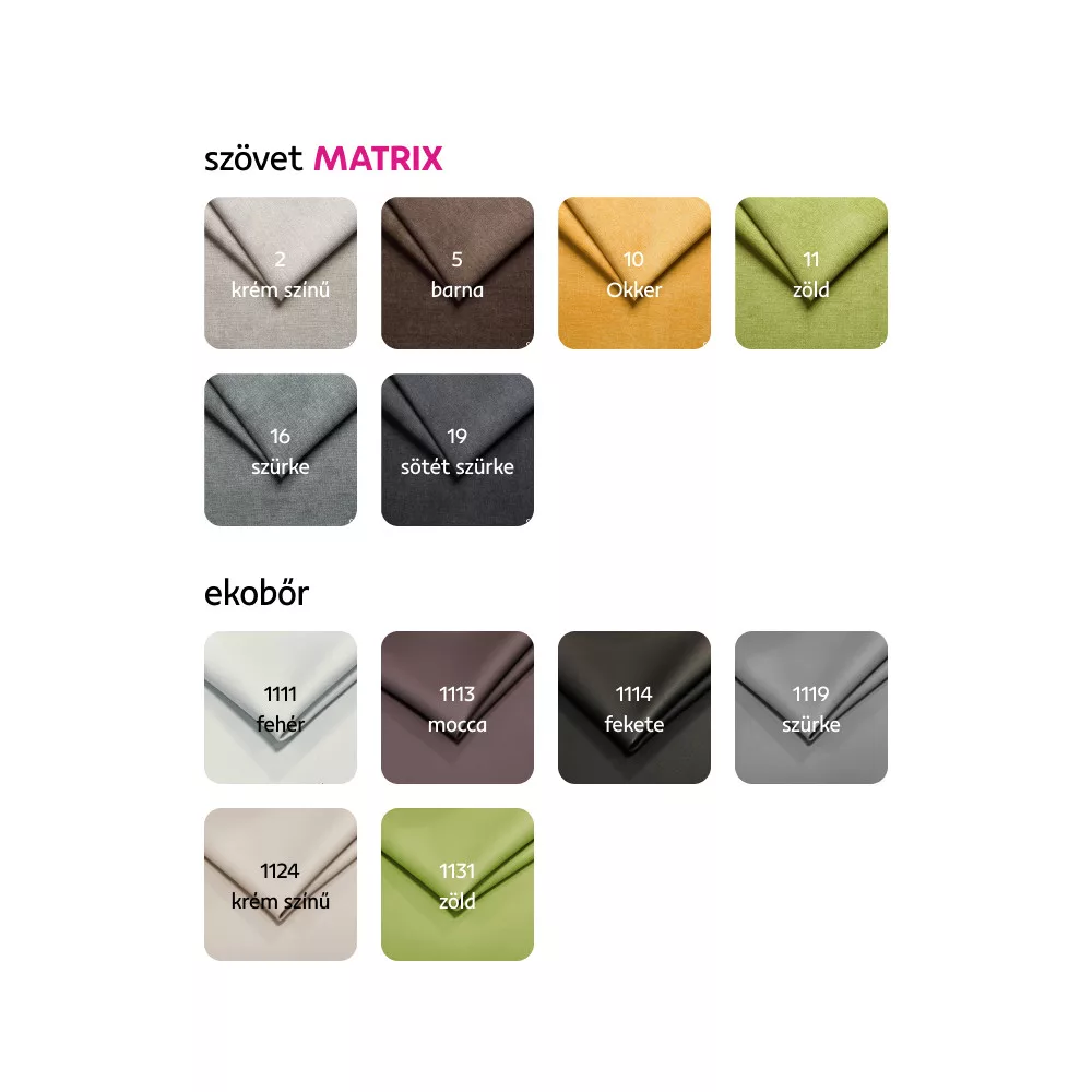 Rendelhető 6 színváltozatban Matrix szövetből. Ár fotel: 194 900 Ft, puff: 64 900 Ft, ülőgarnitúra U: 821 900 Ft. Egyedi megrendelés esetén szükség van az adott összegnek a 20%-át befizetni,mint előleg. Az előleg befizetése után az Ön követelményét benyújtjuk a gyártónak. Szállítási idő 6-8 hét.