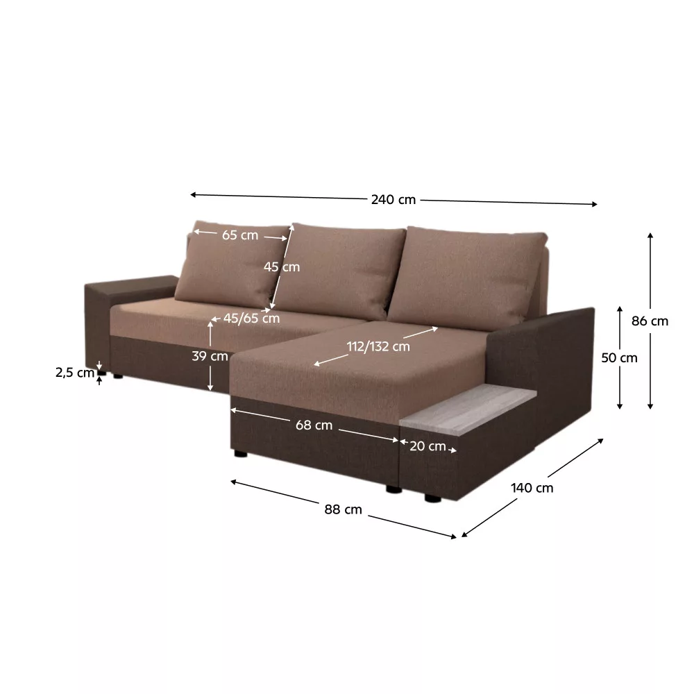 Méretek (SzxMéxMa): 240x140x86 cm