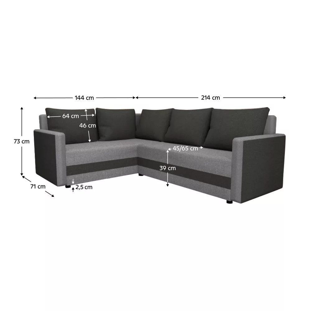 Méretek (SzxMéxMa): 214x144/71x73 cm