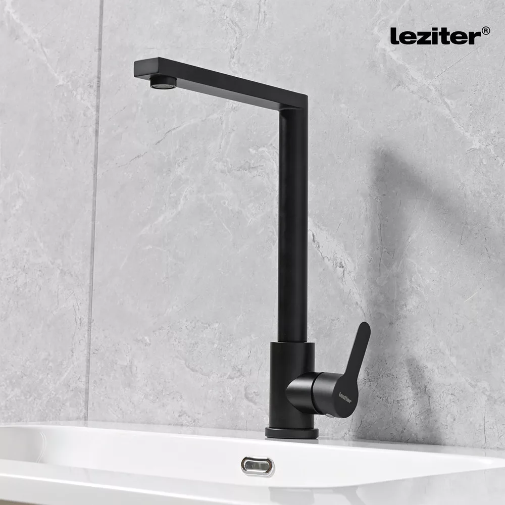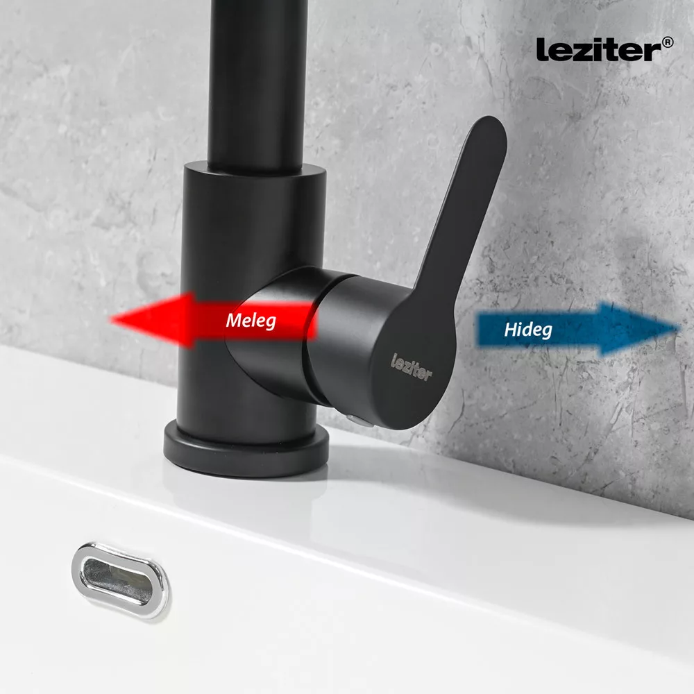 A fekete színű Valen rozsdamentes acélból készült csaptelep modern és letisztult megjelenést kölcsönöz konyhádnak. A 360°-ban forgatható kifolyónak köszönhetően rendkívül praktikus, és könnyedén állíthatod a vízhőmérsékletet egyetlen mozdulattal. A karcálló, könnyen tisztítható felület biztosítja, hogy hosszú távon is tökéletes állapotban maradjon.