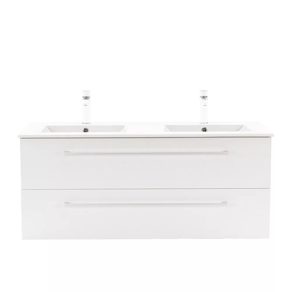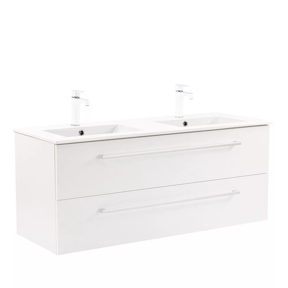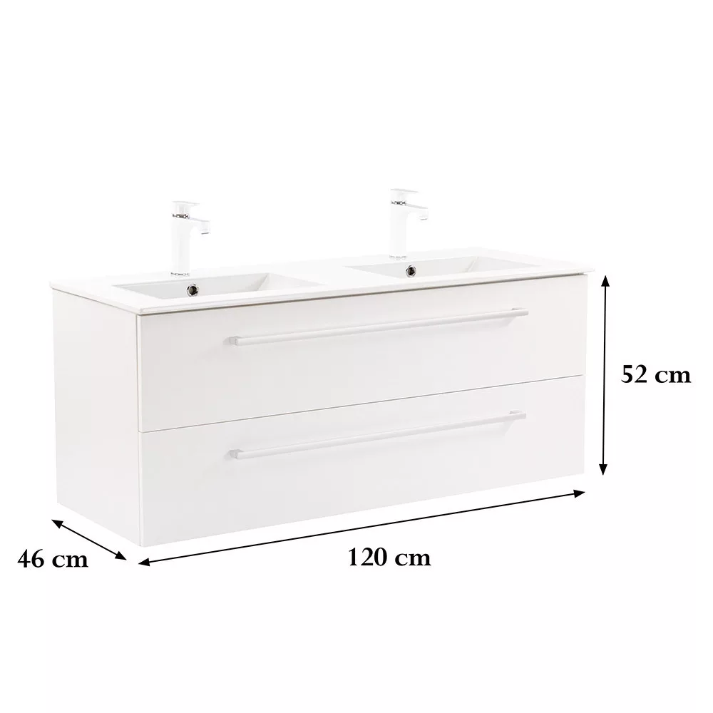 - Elegáns és praktikus mosdó: A bútor flat design kerámia mosdóval érkezik, amely két medencés kivitelű. Modern, esztétikus és könnyen tisztítható.