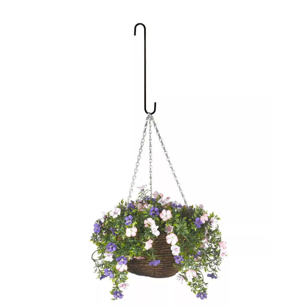 Fekete, akasztható konzol elsősorban virágcserepek, kaspók felakasztására. A kétoldali kampós kialakításnak köszönehetően könnyen felszerelhető. A fekete szín jól mutat bármelyik kertben. Ideális lehet bármilyen más tárgy felakaszására is, például: madár kalitkák, etetők, szélcsengő rögzítésére.