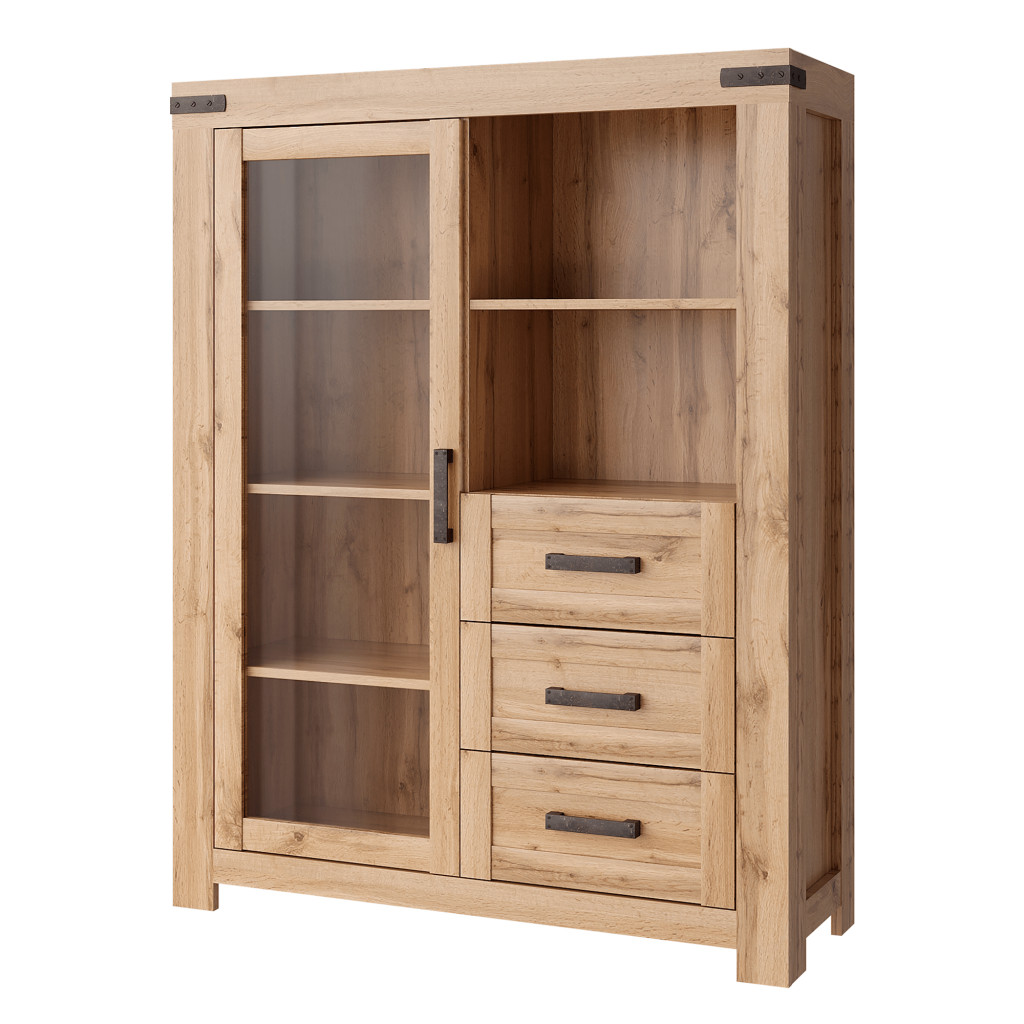 Egy vitrin polcokkal