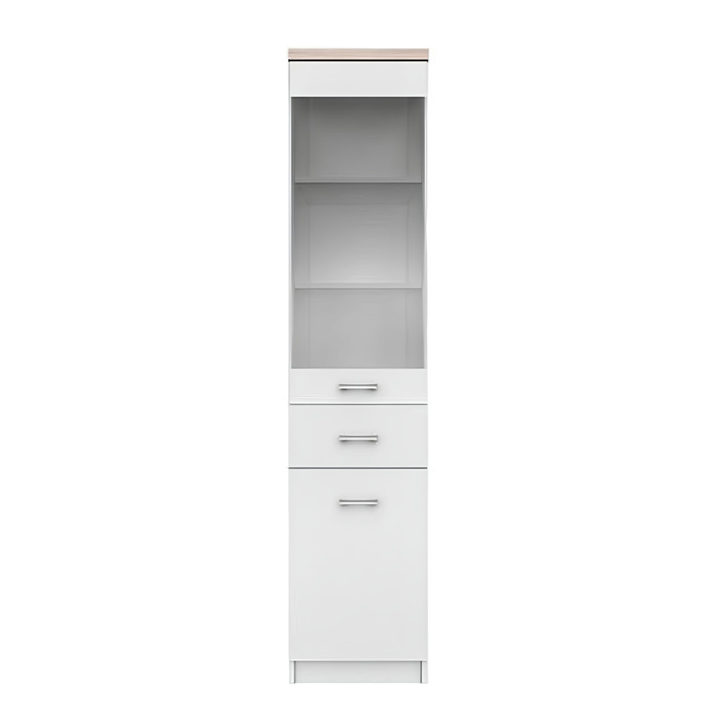 Vitrines szekrény 1D1W1S, fehér/tölgy sonoma, univerzális, TOPTY TYP 03