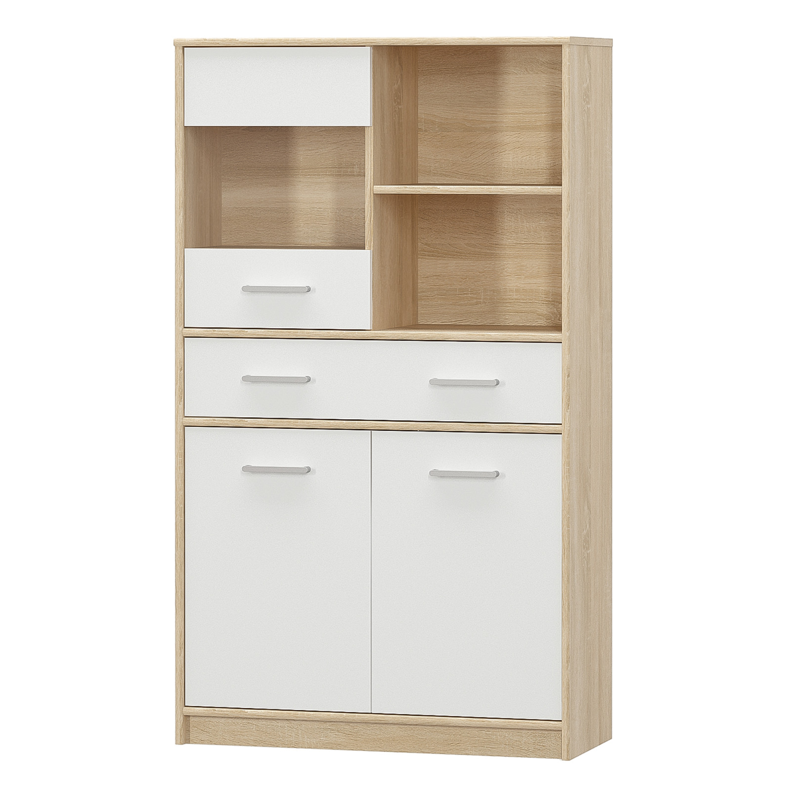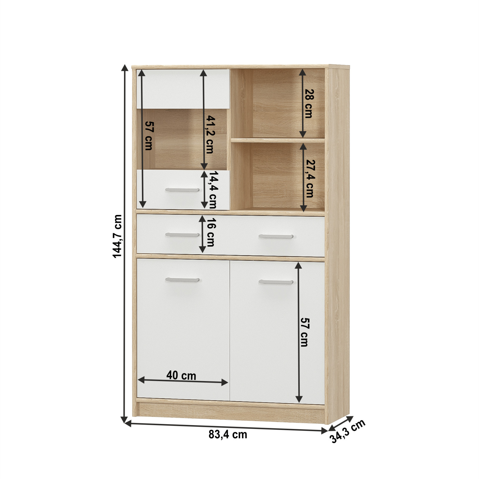 Vitrines szekrény 2D1W1S/80, fehér/tölgy sonoma, TEYO