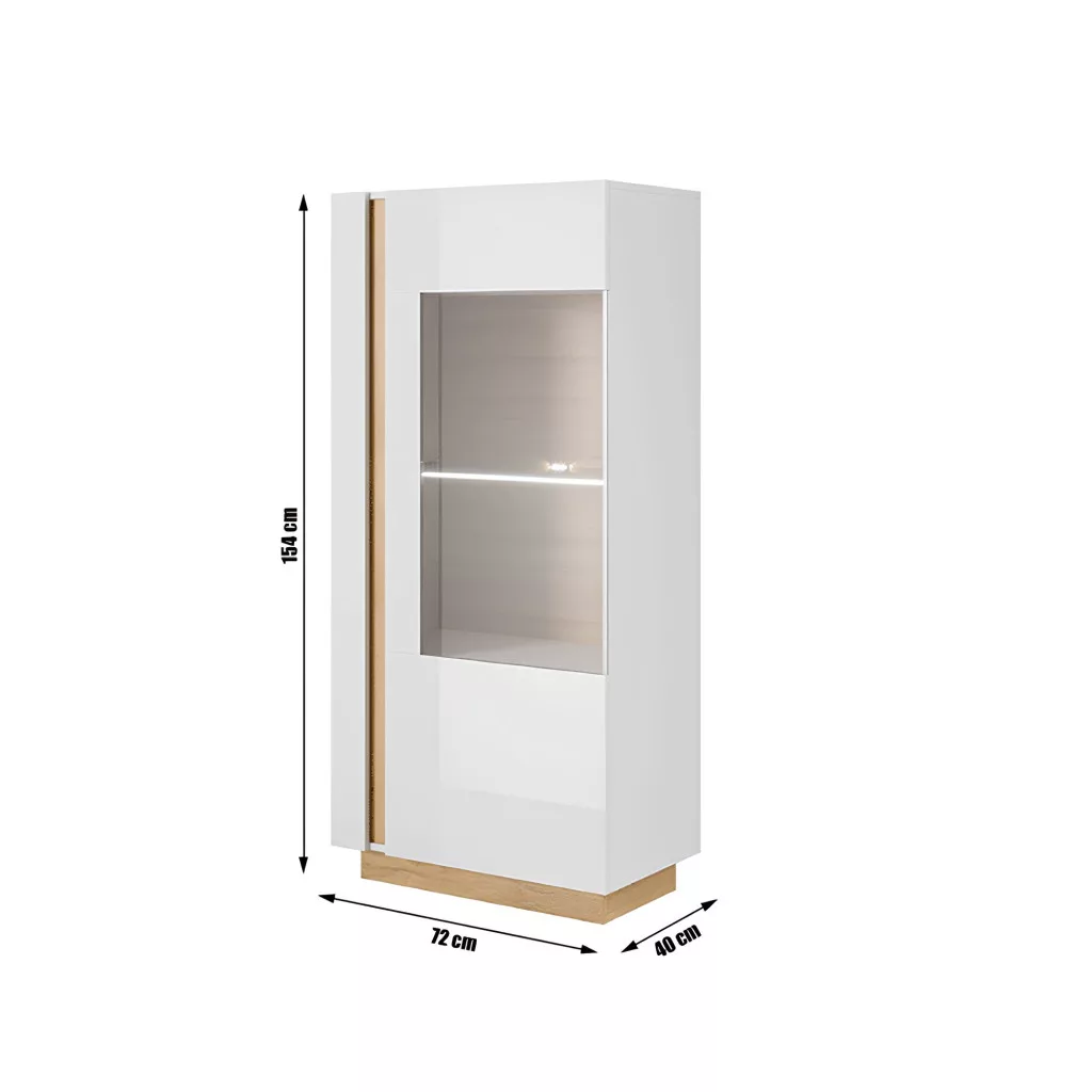Vitrines szekrény 72, fehér/tölgy grandson/magasfényű fehér, CITY