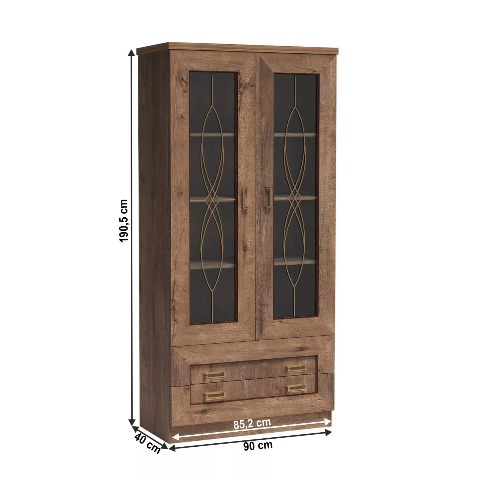 Vitrines szekrény, tölgy lefkas, TEDY Typ T8