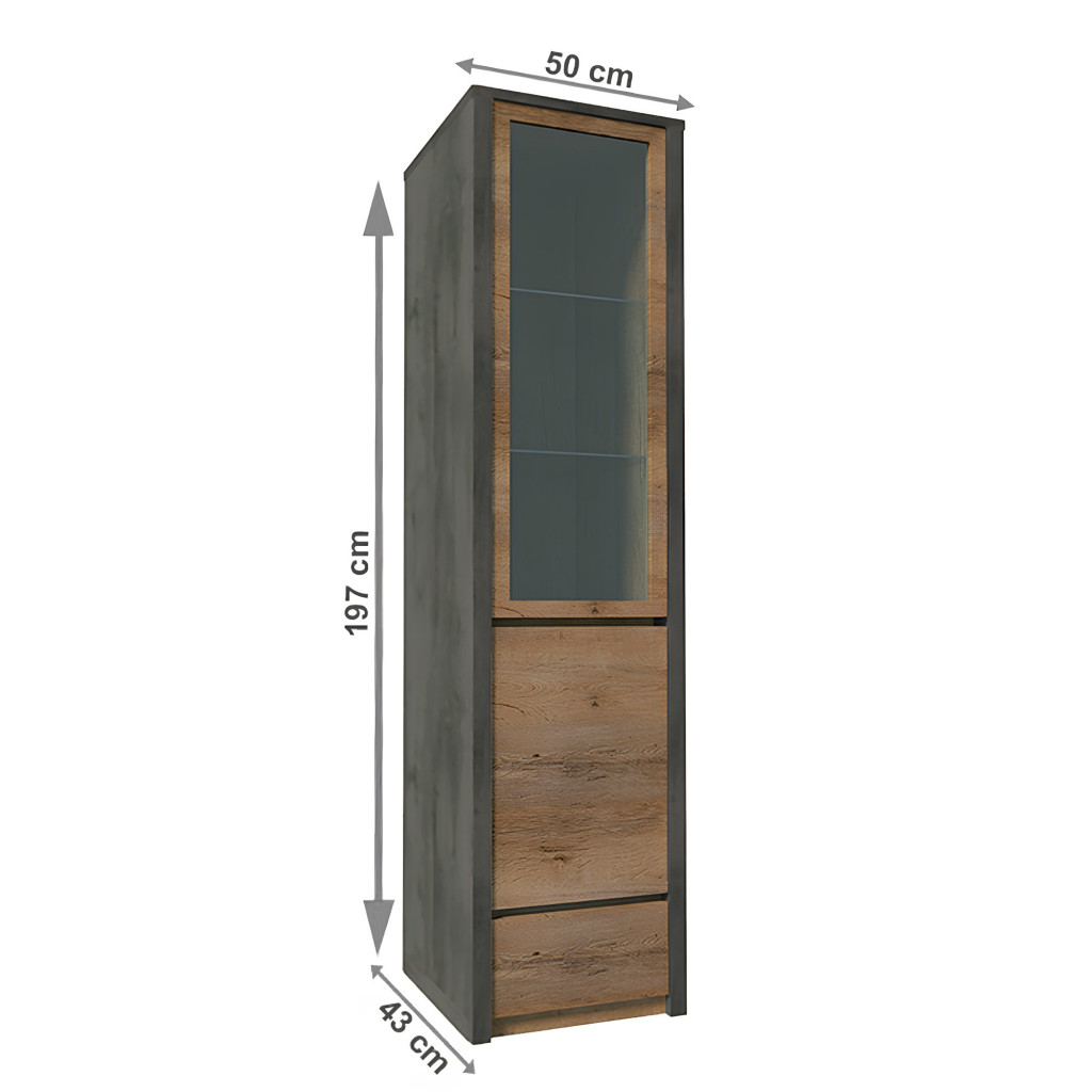 Vitrines szekrény, tölgy lefkas sötét/smooth szürke, MONTANA W1D