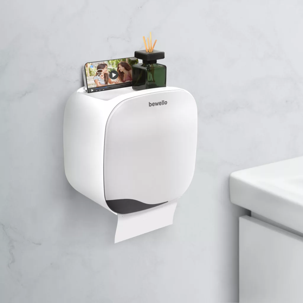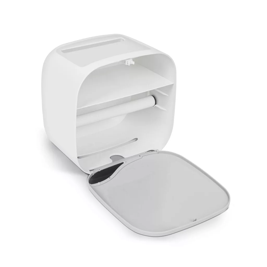 Minden illemhelyiség nélkülözhetetlen felszerelése a WC-papír tartó. Ez a praktikus, öntapadós rögzítéssel rendelkező szekrény elrejti a szem elől a papír gurigát. Kompakt méretének köszönhetően nem foglal sok helyet, mégis hasznos. Használhatja a tetejét polcnak, amelyre elhelyezhet például dekorációs termékeket, illatosítót, zsebkendőt. A szekrény alkalmas hajtogatott wc-papír adagolására is!