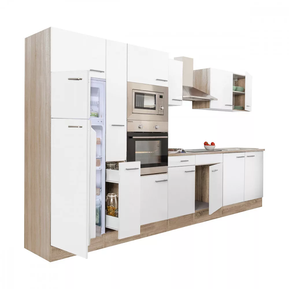 Yorki 360 konyhablokk sonoma tölgy korpusz,selyemfényű fehér fronttal. A tökéletes konyha megteremtője!