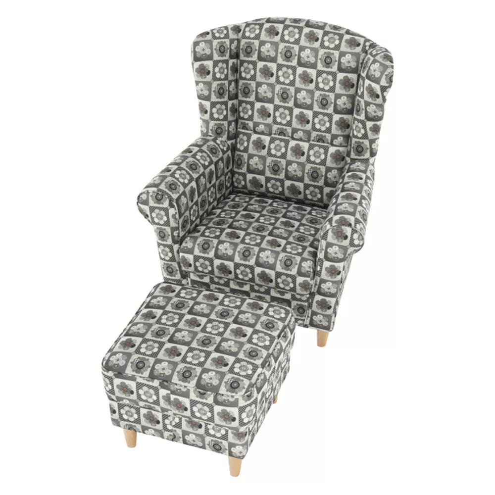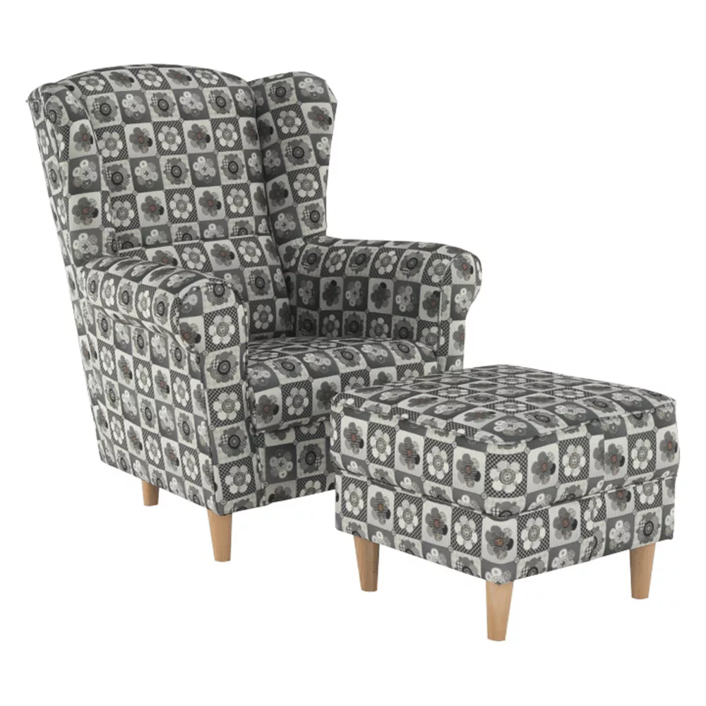 Kényelmes füles fotel puffal