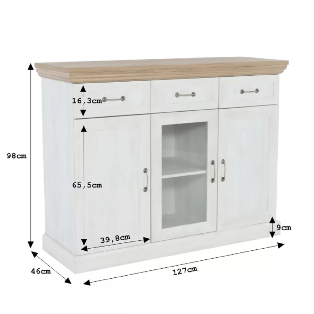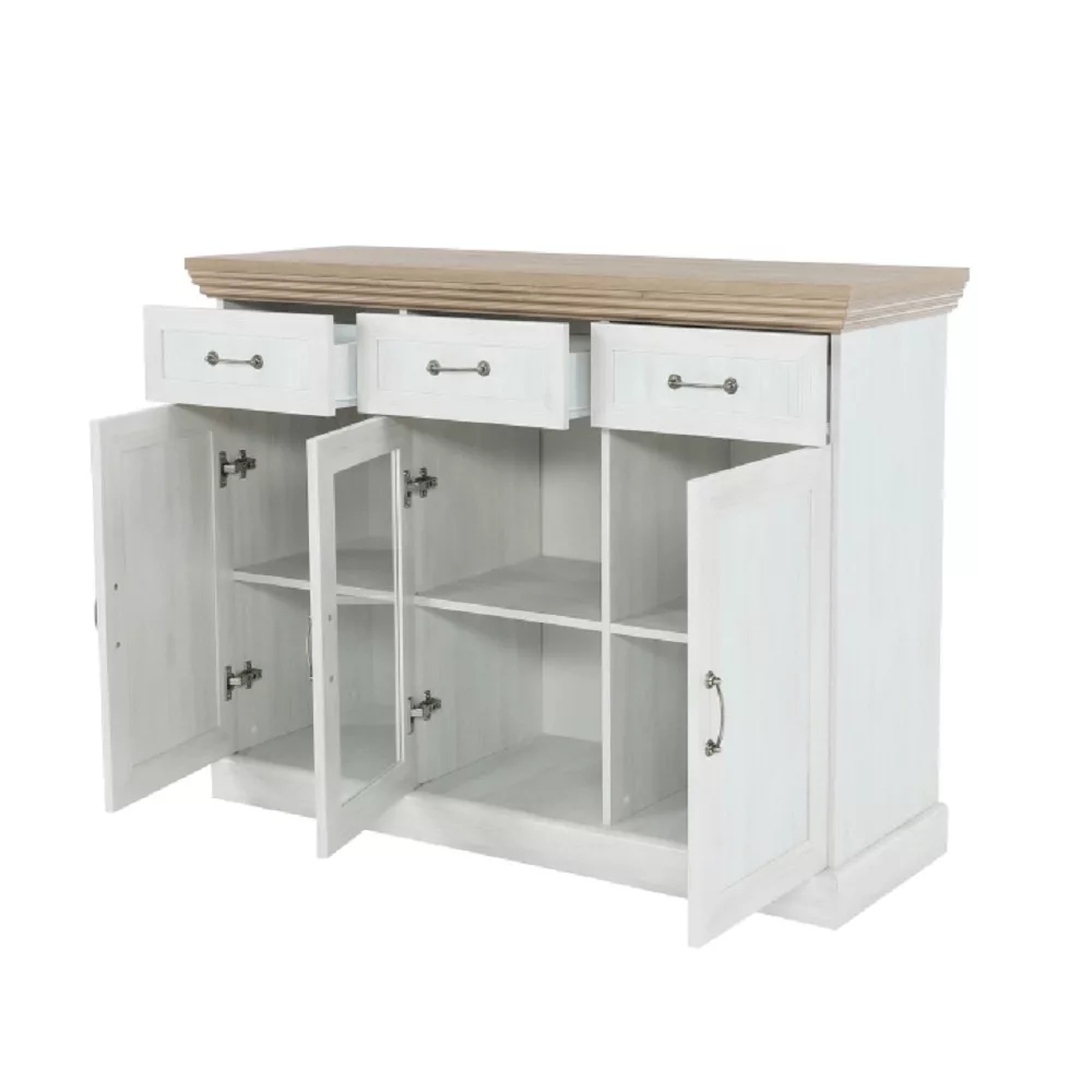 Komód K1S, háromajtós, három fiókkal, az elegáns provence-i stílusú ROYAL elemes bútorcsaládból