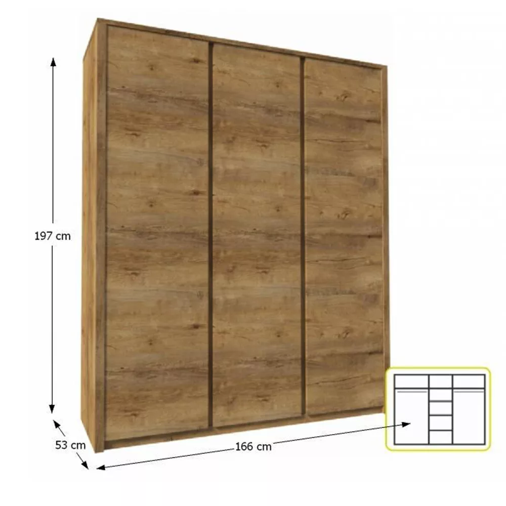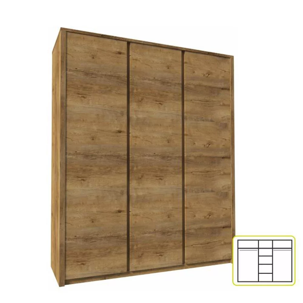 háromajtós szekrény, sötét tölgy lefkas, MONTANA S3D
