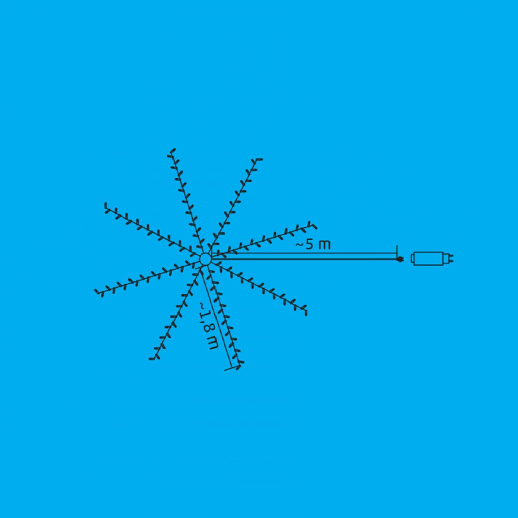 Az 144 darab RGB LED sokszínű skálát kínál, hogy minden alkalomhoz tökéletes megjelenést varázsolhasson. Az egy pontból induló 8 darab füzér egyenként 1,8 méter hosszú, mindegyiken 18 LED található.