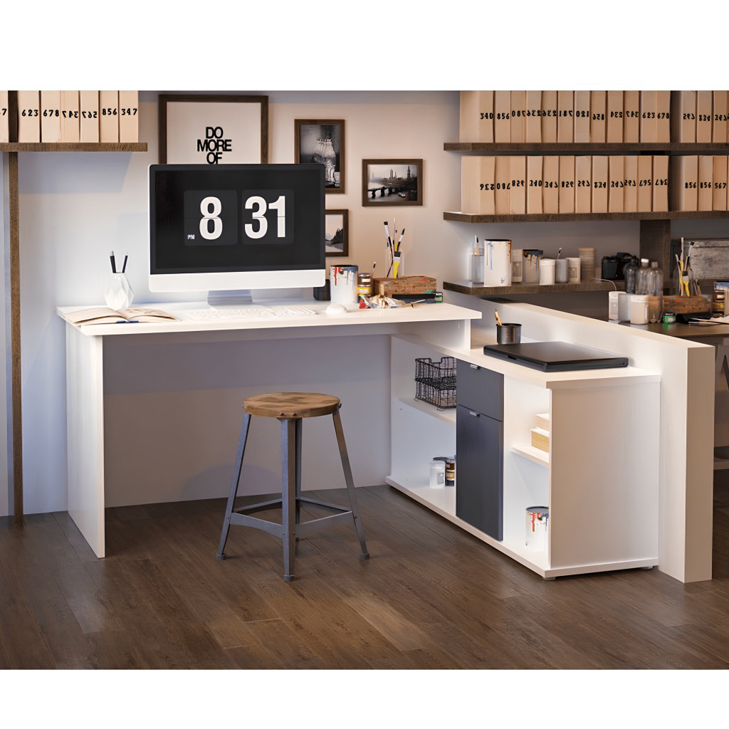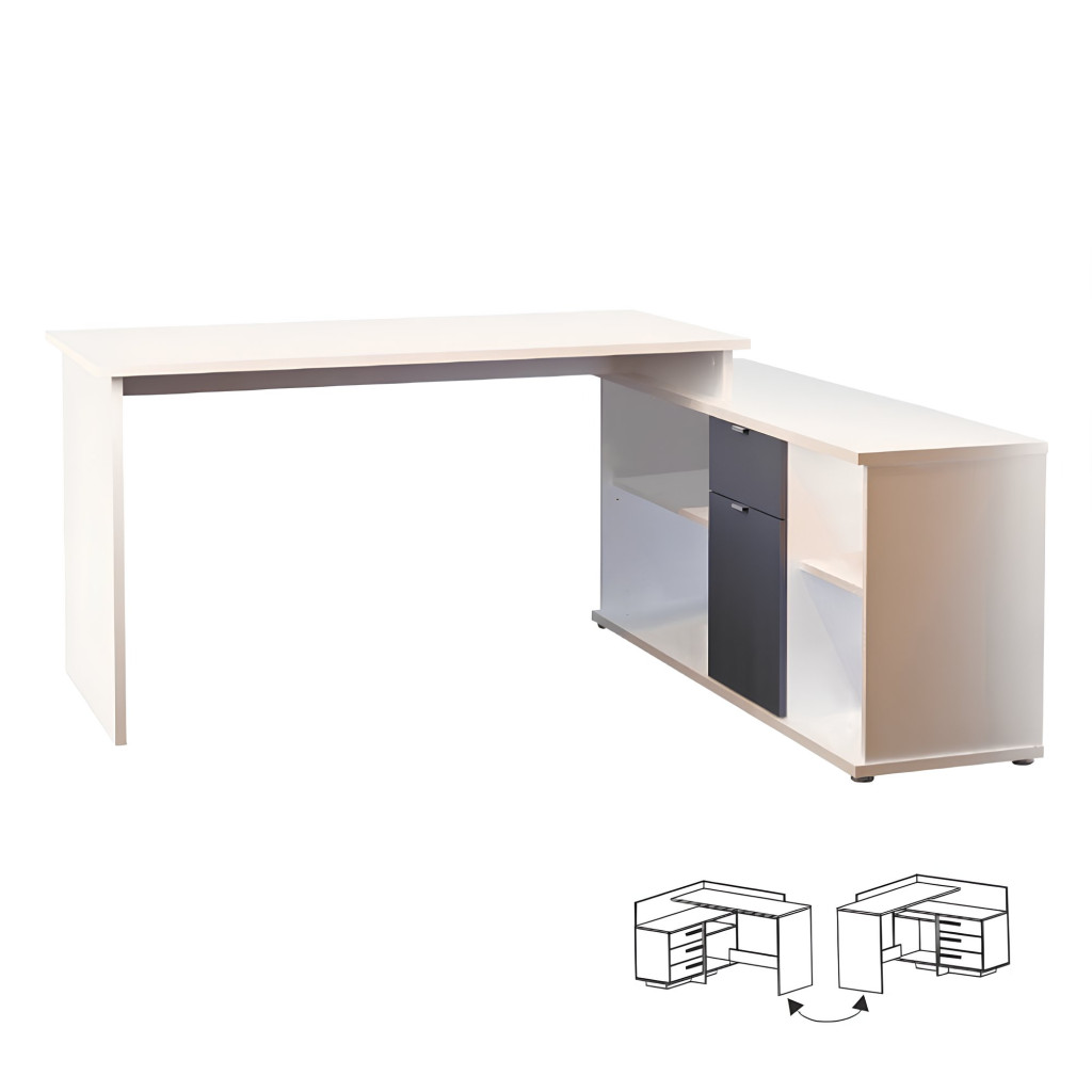 Sarokíróasztal, számítógépasztal, polcokkal és fiókos szekrénnyel, DALTON 2 NEW