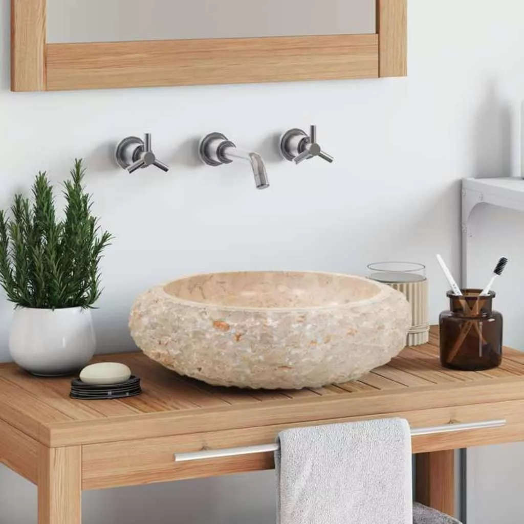 Ez a márvány mosdókagyló rusztikus bájt áraszt, amely igazán szembeötlő lesz fürdőszobájában vagy mosdójában.