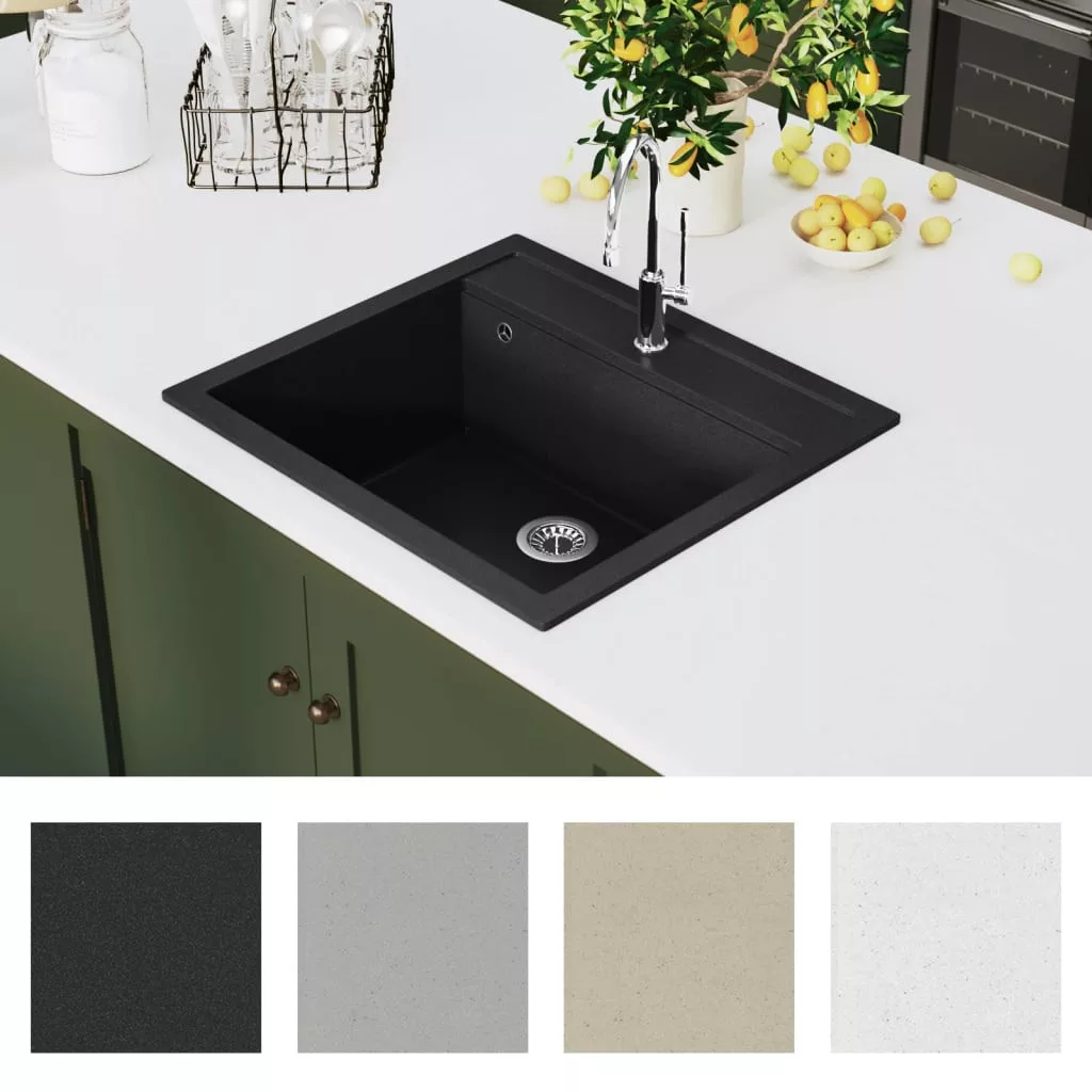 A kiváló minőségű gránitnak köszönhetően a mosogató hőálló, karc- és ütésálló és rendkívül könnyen tisztítható. A szállítás egy szűrőkosarat is tartalmaz, mely felfogja a nagyobb törmelékeket.