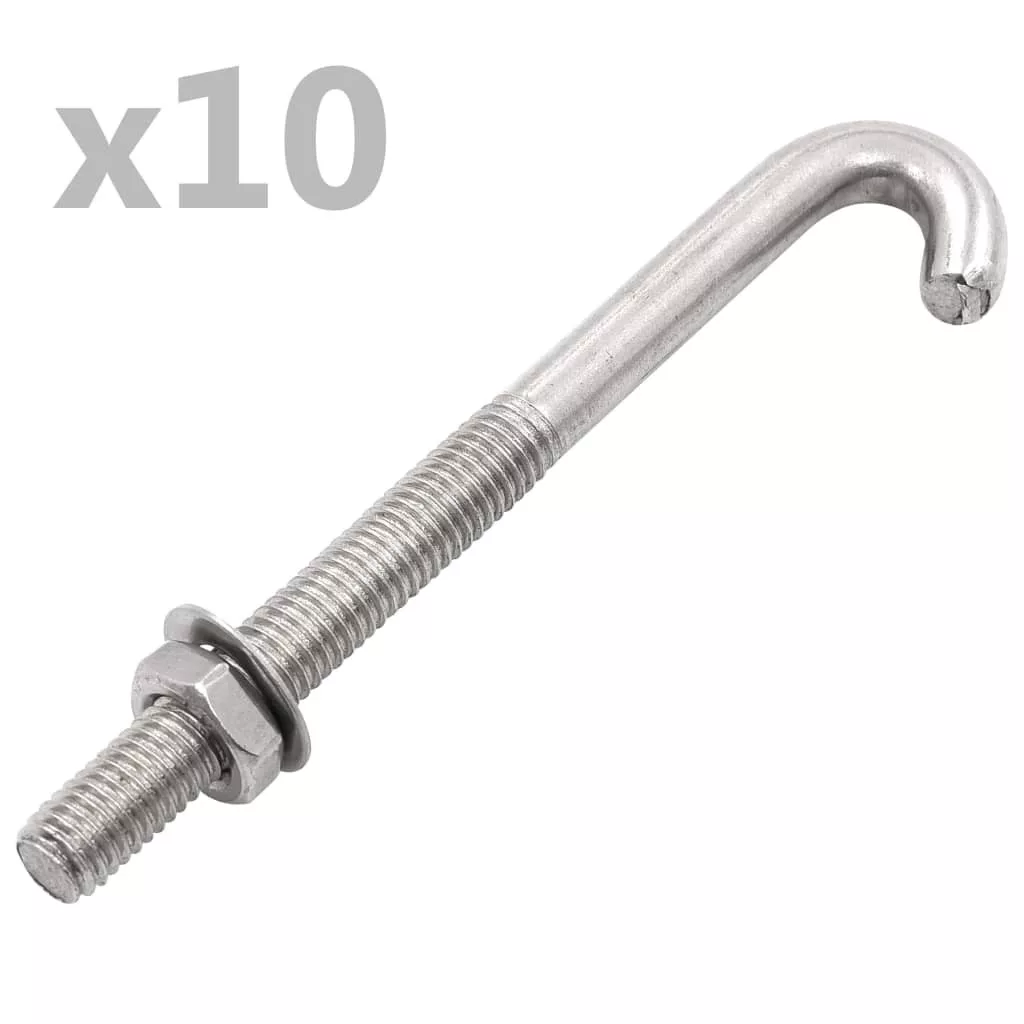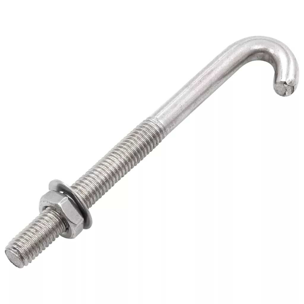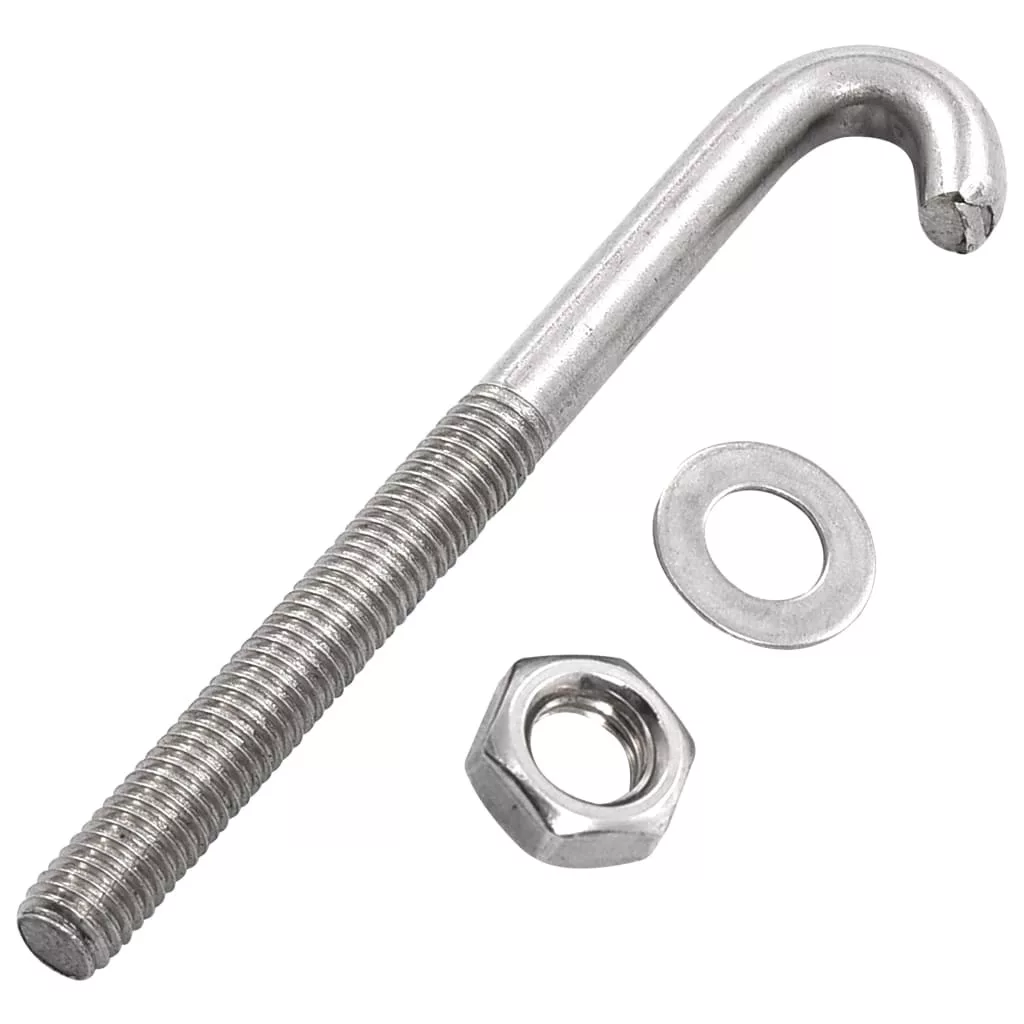 A rozsdamentes acélból készült csavar ellenáll a rzozsdának, biztosítva ezzel a hosszú távú felhasználást. A szállítás 25 szettet tartalmaz egy dobozban. Mindegyik szett egy J-csavart, egy hatlapú anyát és egy alátétet tartalmaz.