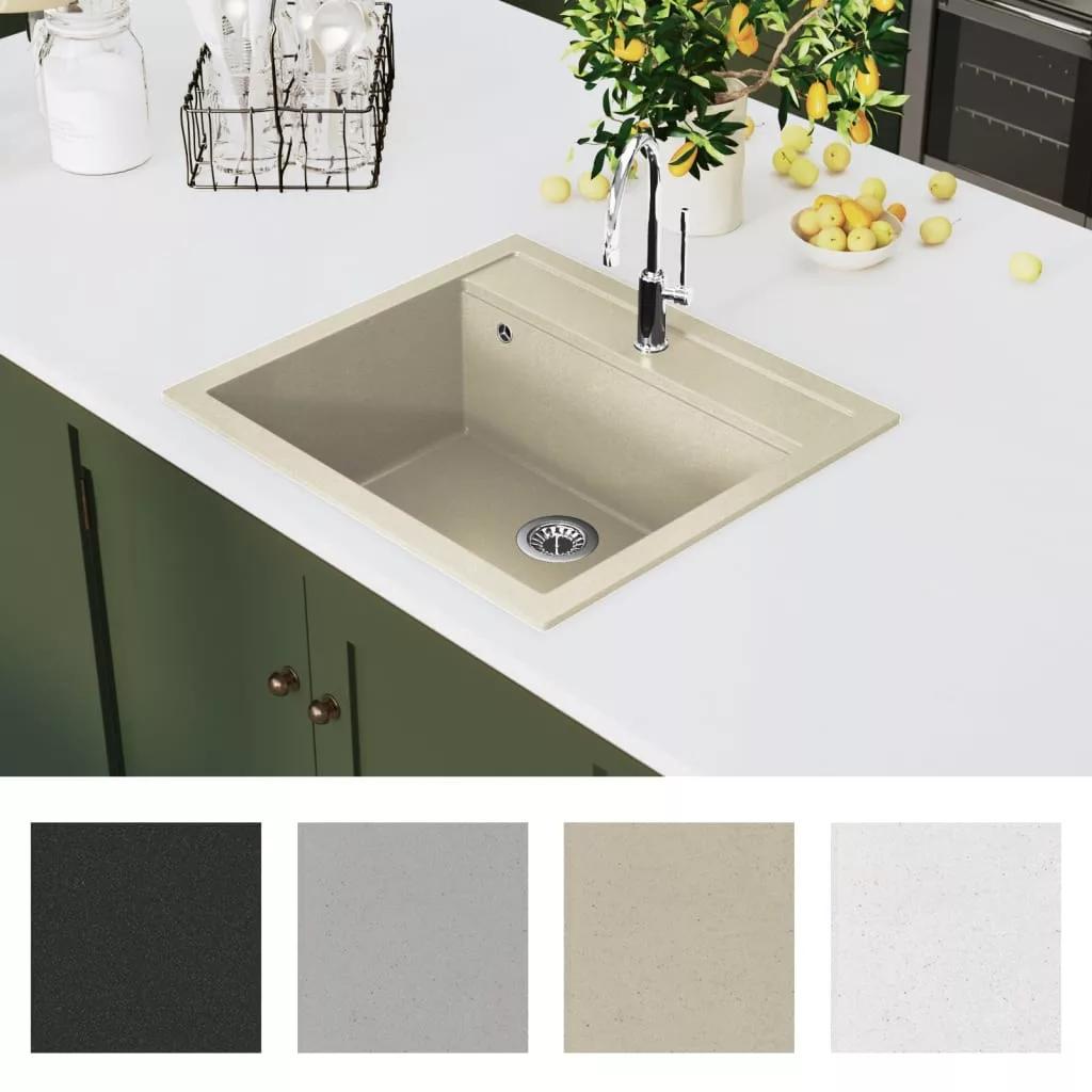 A kiváló minőségű gránitnak köszönhetően a mosogató kiemelkedően hő-, karc- és ütésálló, valamint rendkívül könnyen tisztítható. A csomag egy szűrőkosarat is tartalmaz, mely felfogja a nagyobb törmelékeket.