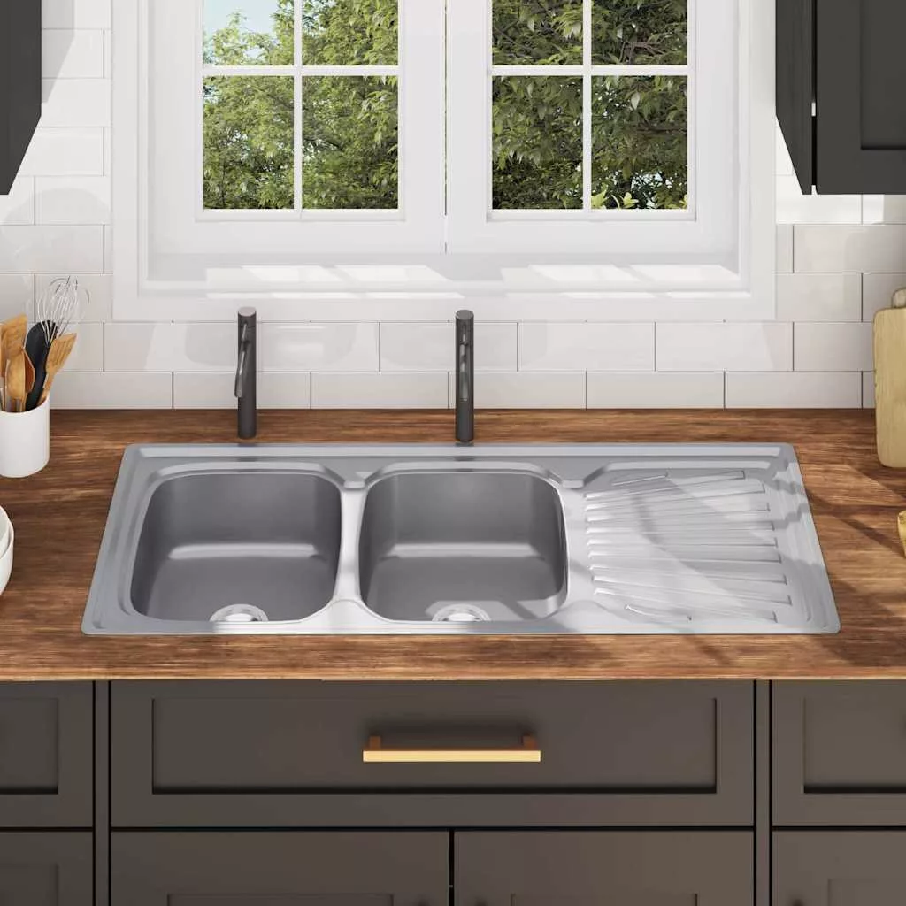 A kiváló minőségű rozsdamentes acélból készült mosogató karc- és ütésálló, valamint rendkívül tartós. Emellett szennytaszító és foltálló, így könnyedén tisztítható. A mosogató helytakarékosságának köszönhetően több hely marad Önnek a pulton. Az extra mély medencék bőséges helyet biztosítanak nagy serpenyők és edények számára, a kétmedencés kialakításnak köszönhetően pedig egy teljesen különálló résszel is rendelkezik. A csepegtetőtálcának nem csupán mosogatáskor veheti hasznát, hanem zöldségek szeletelésekor is. A négyszögletes mosogató jobb és bal oldalára is szerelhető a csepegtetőtálca. A csomag a szűrőt és a szifont is tartalmazza.