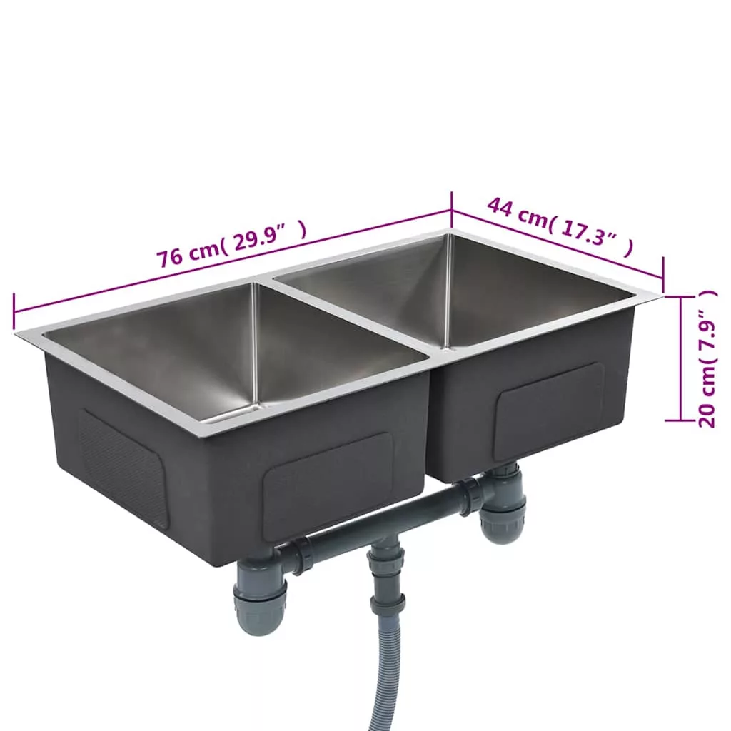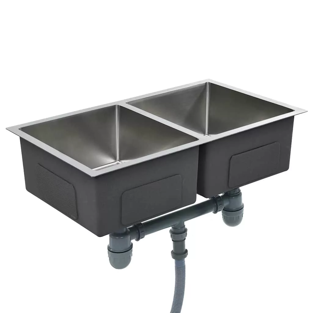 A praktikus és tökéletes kialakítású kétmedencés mosogató minőségi rozsdamentes acélból készült kézzel, mely párásodásgátló festékkel lett felülkezelve, így penészálló, ólommentes és korrózióálló. Hangszigetelt a zajcsökkentő alátéteknek köszönhetően. Az egyedi, X-alakú csatornaszerkezet gyors vízáramlást tesz lehetővé, aminek köszönhetően nem áll meg a víz a mosogatók alján.
