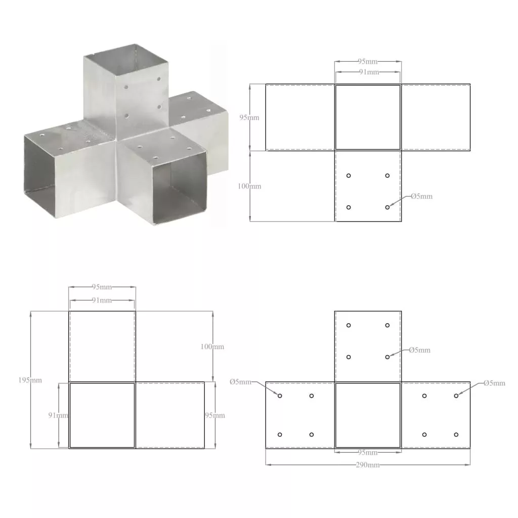 A horganyzott tartó összeköti és stabilan tartja a gerendákat. Az összes csatlakoztató gyári lyukakkal lett ellátva. Ez a gerendatartó 4 négyzet alakú, 91 mm-es fa gerenda számára való.