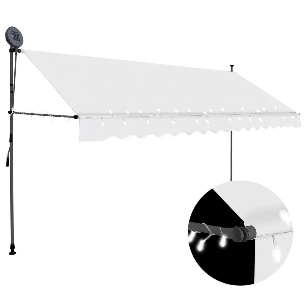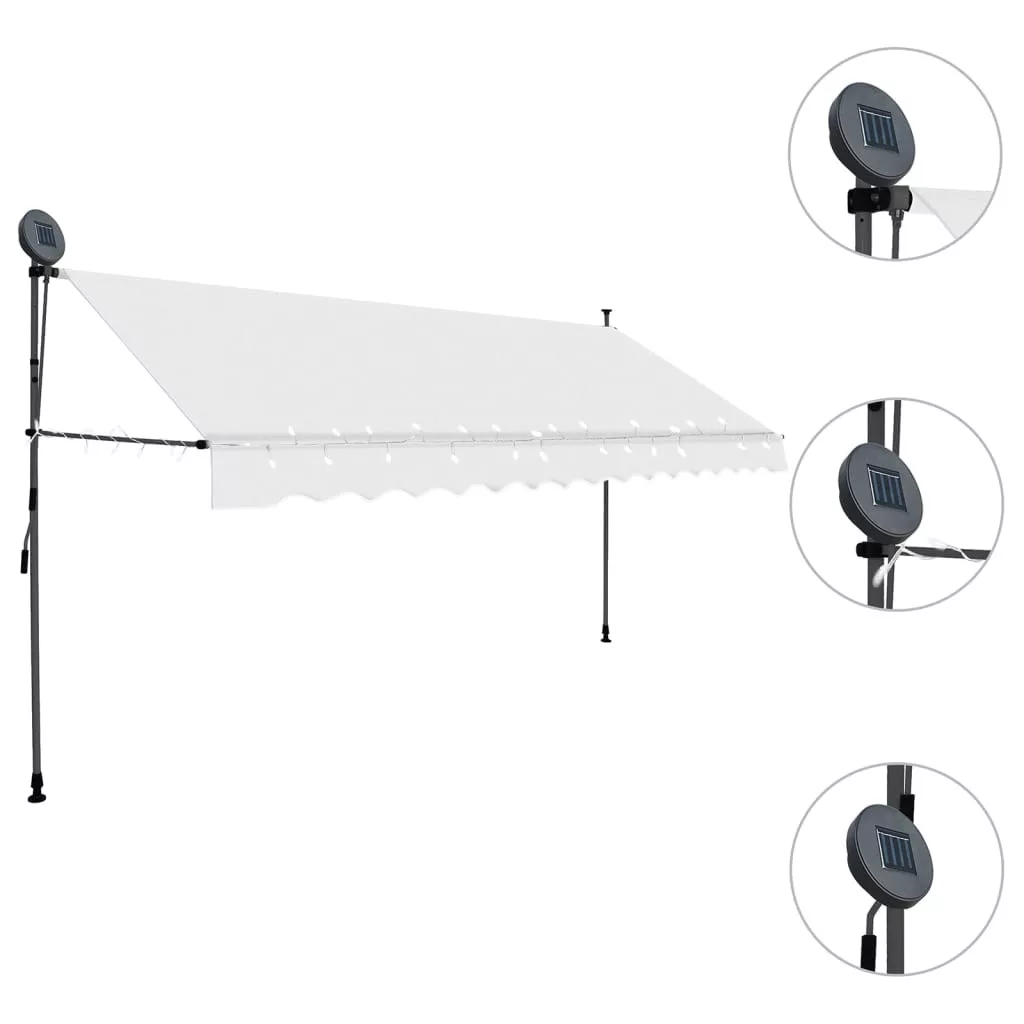 Ez a vízlepergető és kosztaszító, UV- és időjárásálló napellenző kiváló minőségű, poliuretánnal bevont poliészterből készült. Az erős acélváz stabillá és strapabíróvá teszi a szerkezetet. A könnyen tisztítható poliészterszövet levehető és mosható. A fogantyú segítségével a pergola feltekerhető. A szerelési magasság és szög igény szerint állítható. Ráadásul a napelemes LED-lámpák energiatakarékos éjszakai világításként szolgálnak. A napellenző könnyen összeszerelhető.