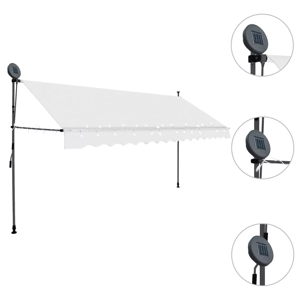 Ez a vízlepergető és kosztaszító, UV- és időjárásálló napellenző kiváló minőségű, poliuretánnal bevont poliészterből készült. Az erős acélváz stabillá és strapabíróvá teszi a szerkezetet. A könnyen tisztítható poliészterszövet levehető és mosható. A fogantyú segítségével a pergola feltekerhető. A szerelési magasság és szög igény szerint állítható. Ráadásul a napelemes LED-lámpák energiatakarékos éjszakai világításként szolgálnak. A napellenző könnyen összeszerelhető.