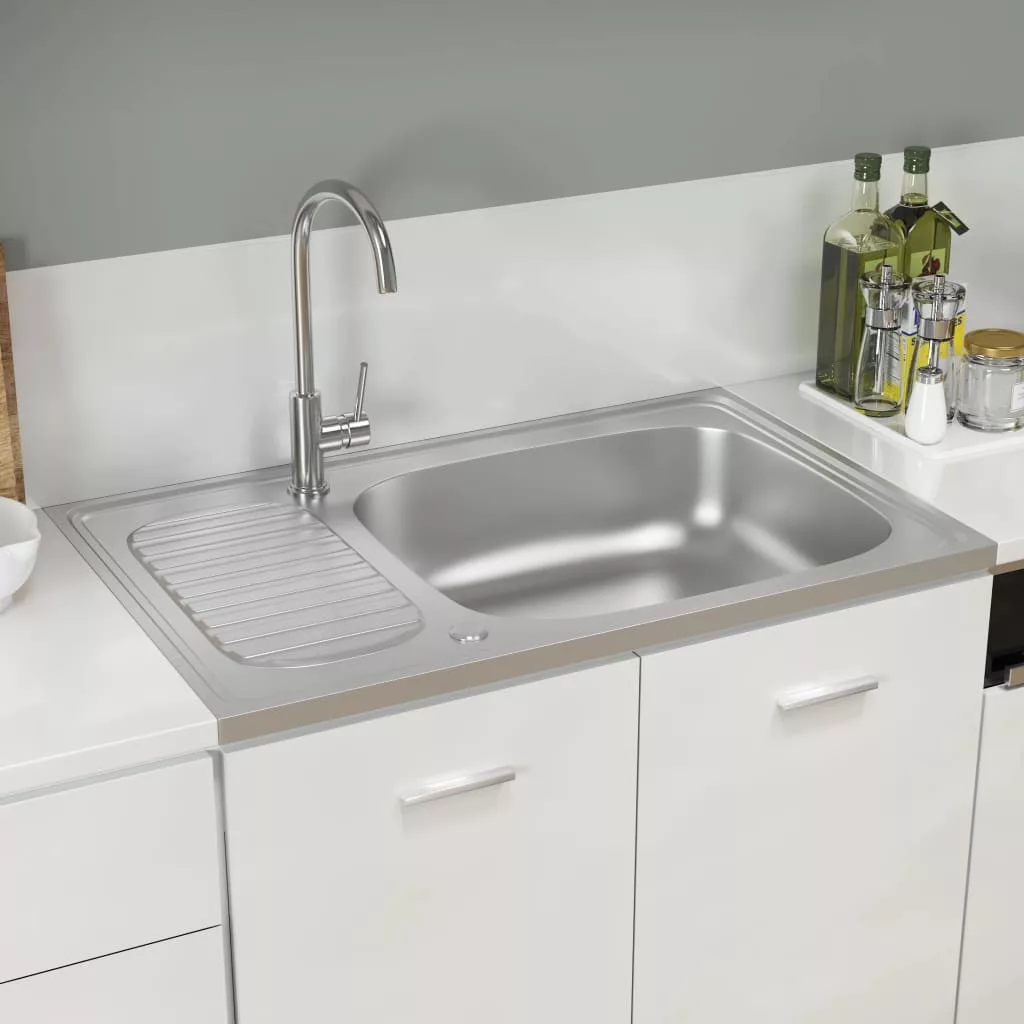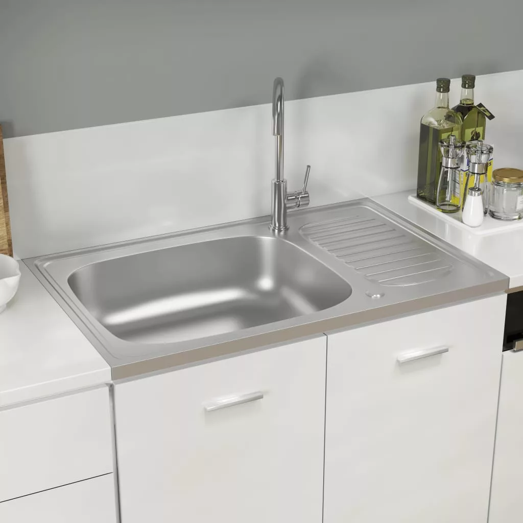 A mosogató SUS-ból (rozsdamentes acélból) készült, így hőálló, karc- és ütésálló, valamint könnyen tisztítható. Ennek a mosdókagylónak az extra vastag oldalai a szekrény tetejére helyezhetők, az oldalsó lefolyó pedig extra helyet biztosít az edények számára. Lefolyócső is tartozik hozzá, így 2 oldalra is behelyezhető a kétoldali csaptelep nyílások miatt. Mivel a mosogató teljesen megfordítható, a mosdó bal vagy jobb oldalra is felszerelhető.