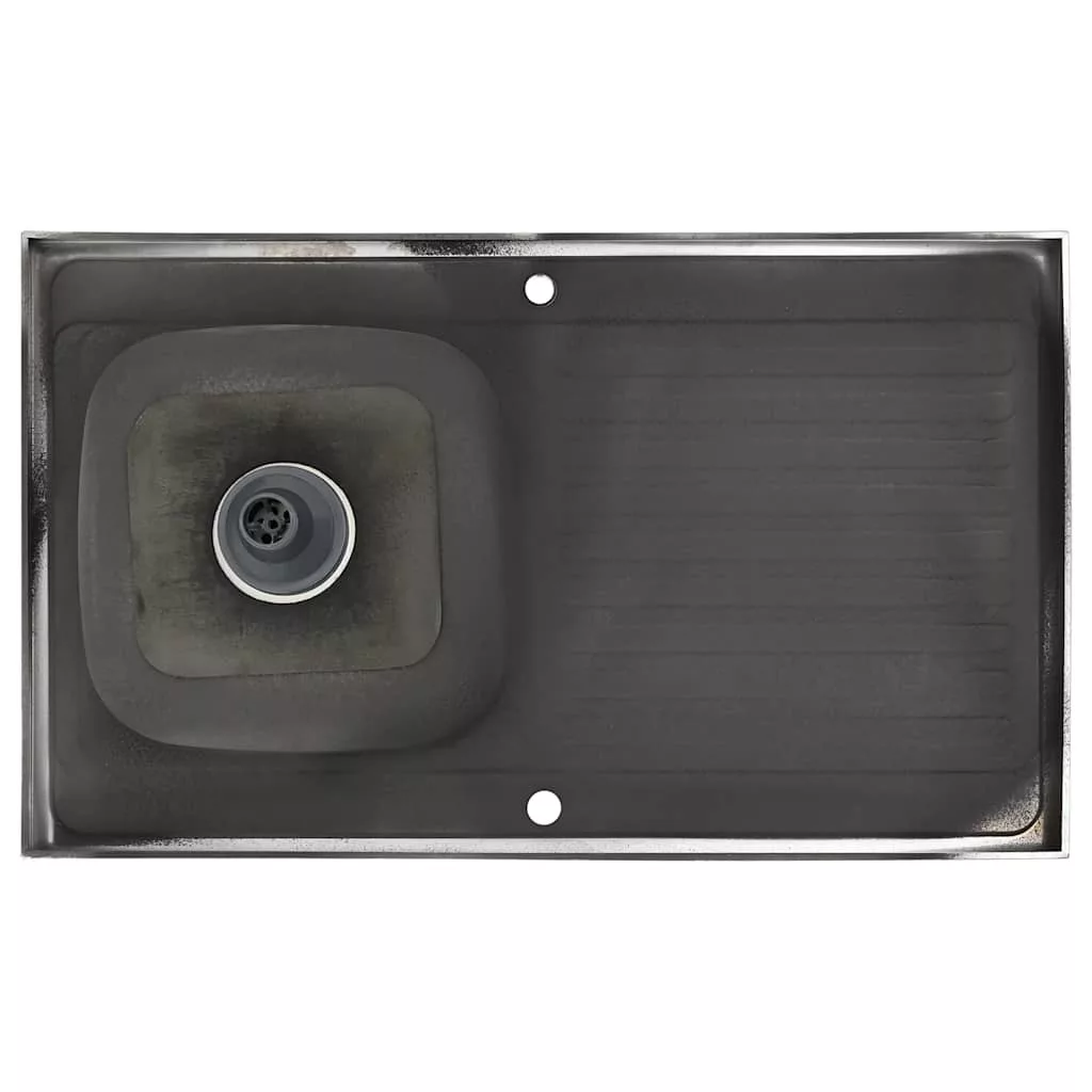 A mosogató SUS-ból (rozsdamentes acélból) készült, így hőálló, karc- és ütésálló, valamint könnyen tisztítható. Ennek a mosdókagylónak az extra vastag oldalai a szekrény tetejére helyezhetők, az oldalsó lefolyó pedig extra helyet biztosít az edények számára. Lefolyócső is tartozik hozzá, így 2 oldalra is behelyezhető a kétoldali csaptelep nyílások miatt. Mivel a mosogató teljesen megfordítható, a mosdó bal vagy jobb oldalra is felszerelhető.