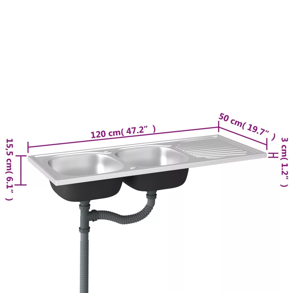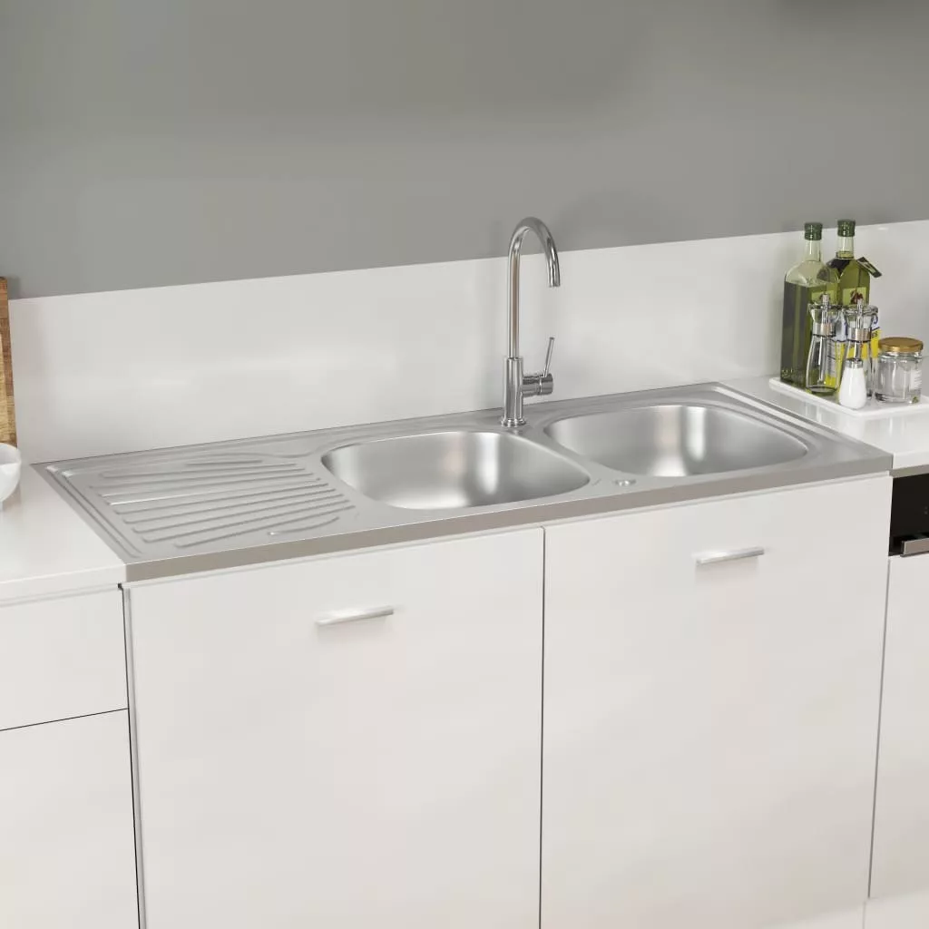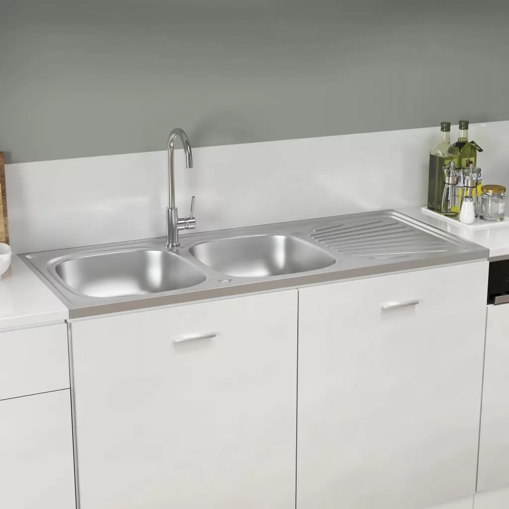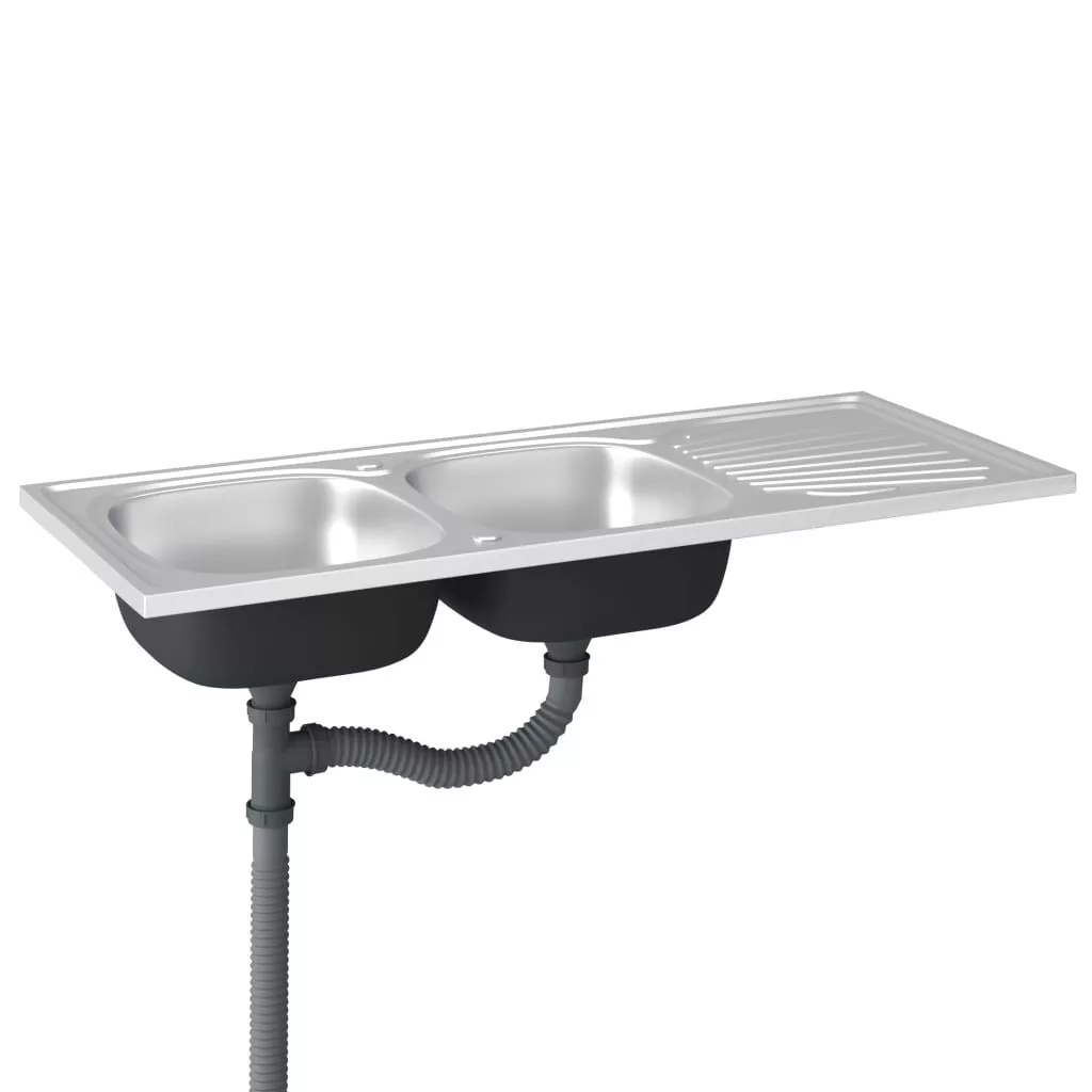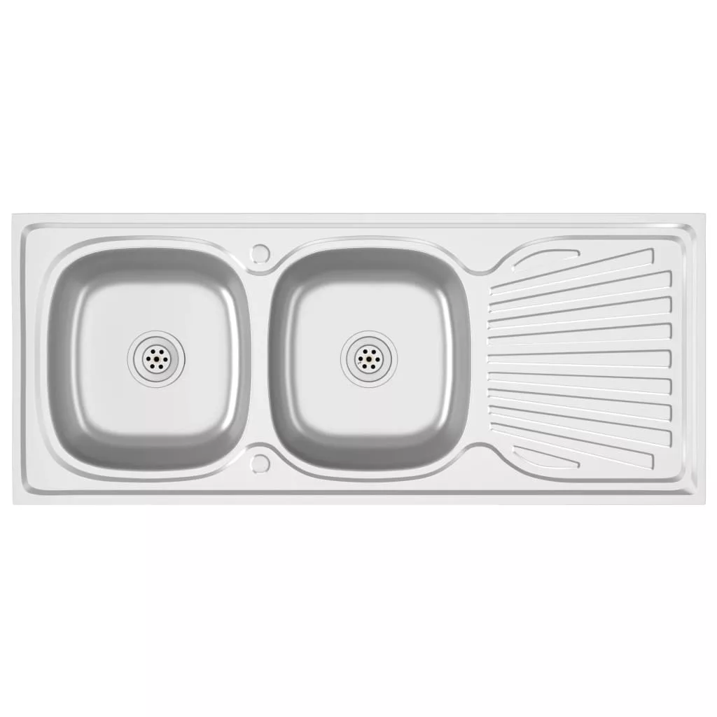 Ez a konyhai mosogató dupla mosdókagylóval és lefolyókészlettel időtlen kiegészítője lesz meglévő konyhai berendezésének.