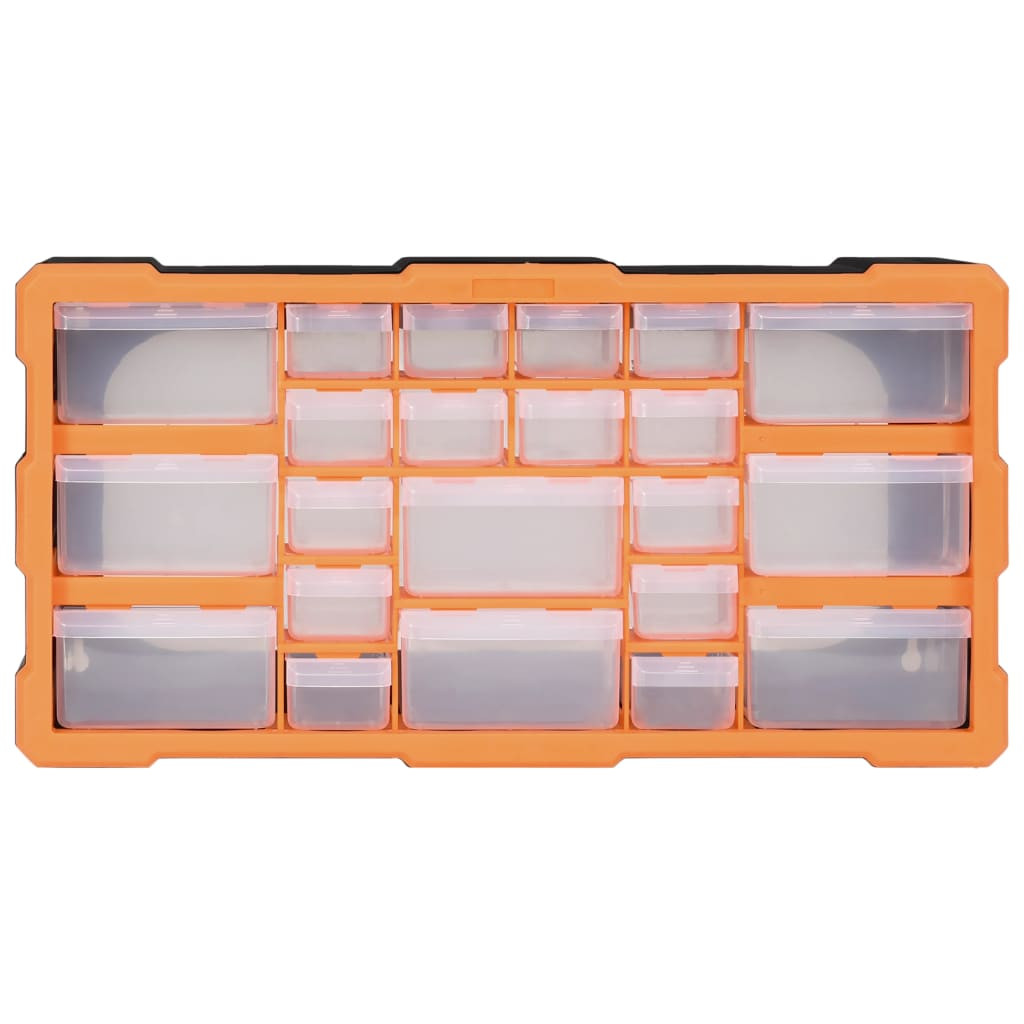 Ez a tárolóegység 14 kis fiókot és 8 közepes fiókot tartalmaz az Ön különféle igényeinek kielégítésére. Rendezetten és kézközelben tárolhatja benne a kéziszerszámokat és a kiegészítőket, például a rögzítőket. A szerszámszekrény ütésálló műanyagból készült, így egyaránt tartós és stabil. A fiókok azonban átlátszó műanyagból készültek, így gyorsan azonosítható a tartalmuk. A szerszámdoboz ideális anyák, csavarok, szegek, általános kellékek és alkatrészek tárolására.