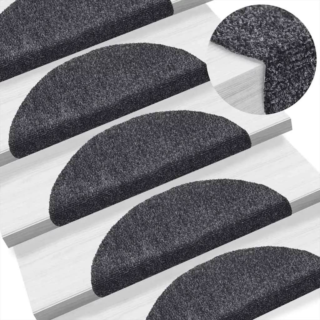 A szőnyegek strapabíró, tűvel lyuggatott szövetből készültek, így hangszigetelők, csúszásmentesek, kényelmesek és melegek is. Szükség esetén moshatók, és kialakításuknak köszönhetően a lépcső elejét és tetejét is védik. A hátoldalon lévő öntapadós pontok segítségével a szőnyegek könnyen a lépcsőre tehetők.