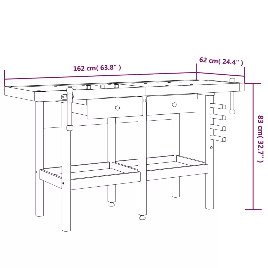 Erős és robusztus vázának köszönhetően ez a fából készült munkaasztal bármilyen munkához tökéletes a garázsban, műhelyben vagy fészerben.