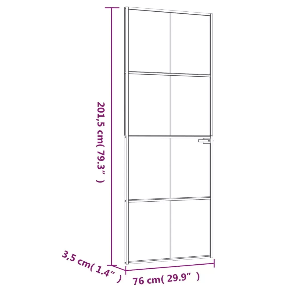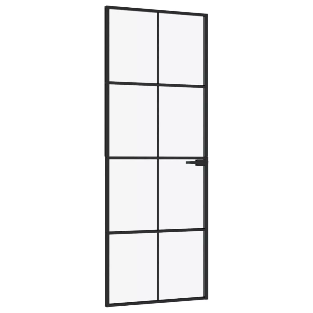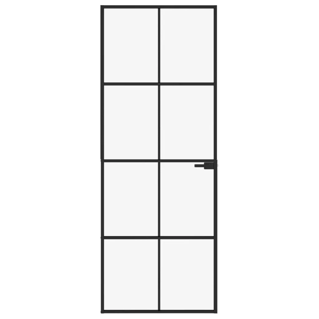 vidaXL fekete edzett üveg és alumínium vékony beltéri ajtó 76x201,5 cm