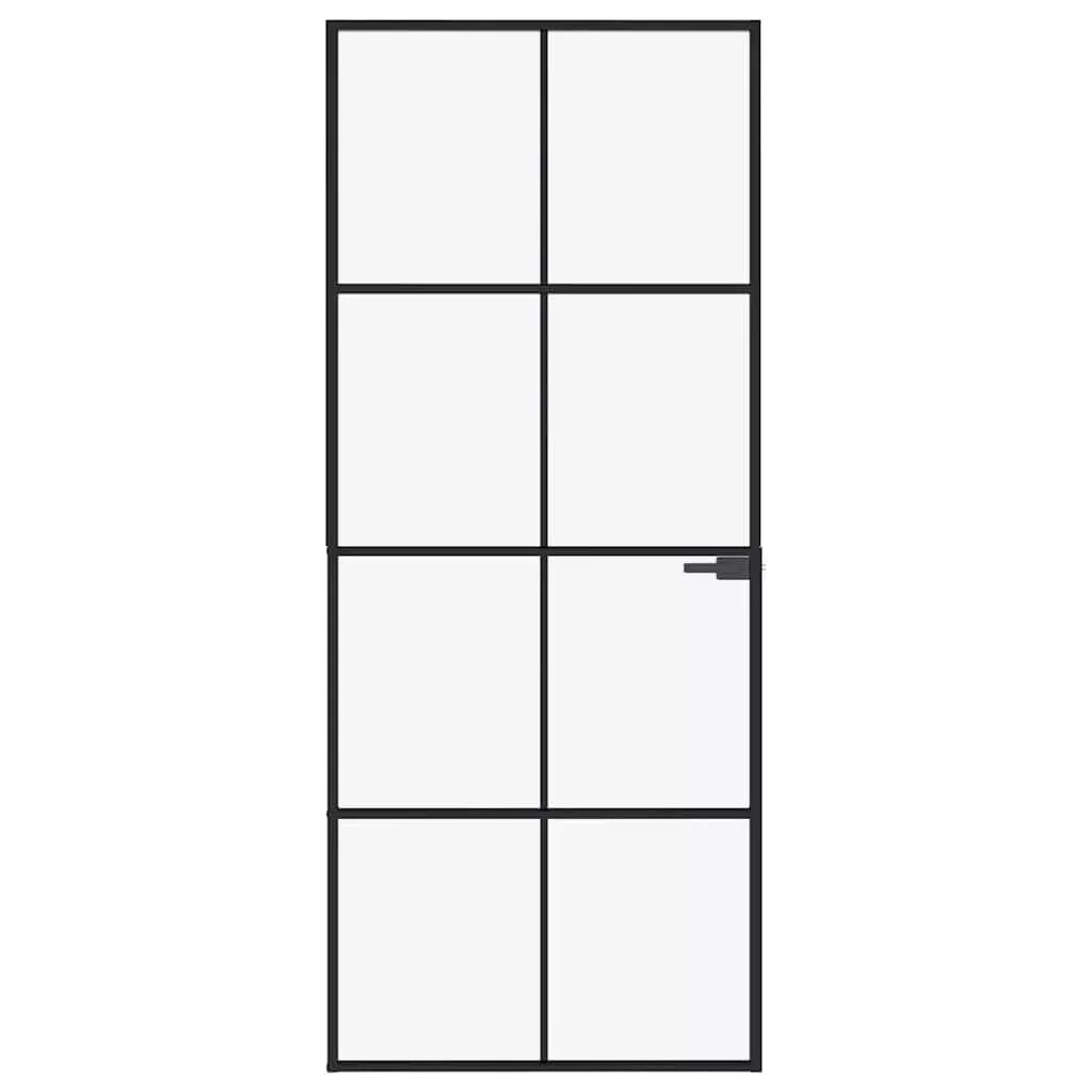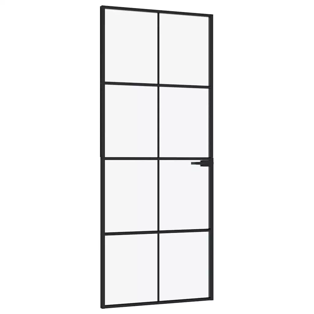 vidaXL fekete edzett üveg és alumínium vékony beltéri ajtó 83x201,5 cm