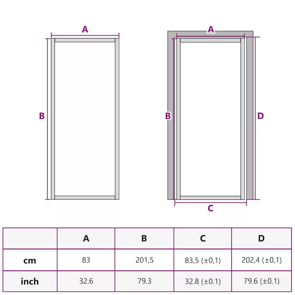 • Ez a beltéri ajtó 35-50 mm-es ajtókeretbe szerelhető.
