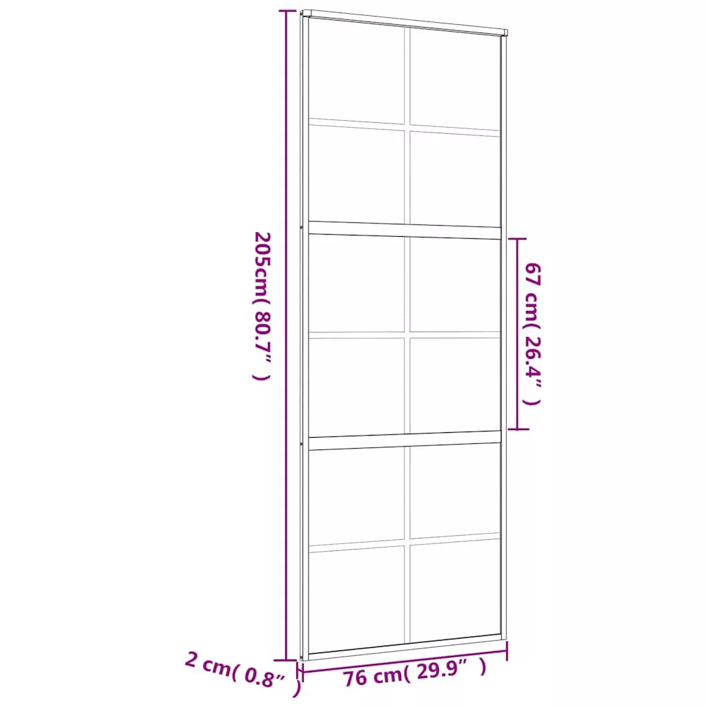 vidaXL aranyszínű ESG tejüveg és alumínium tolóajtó 76 x 205 cm