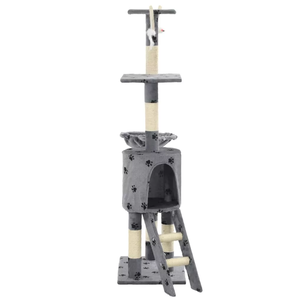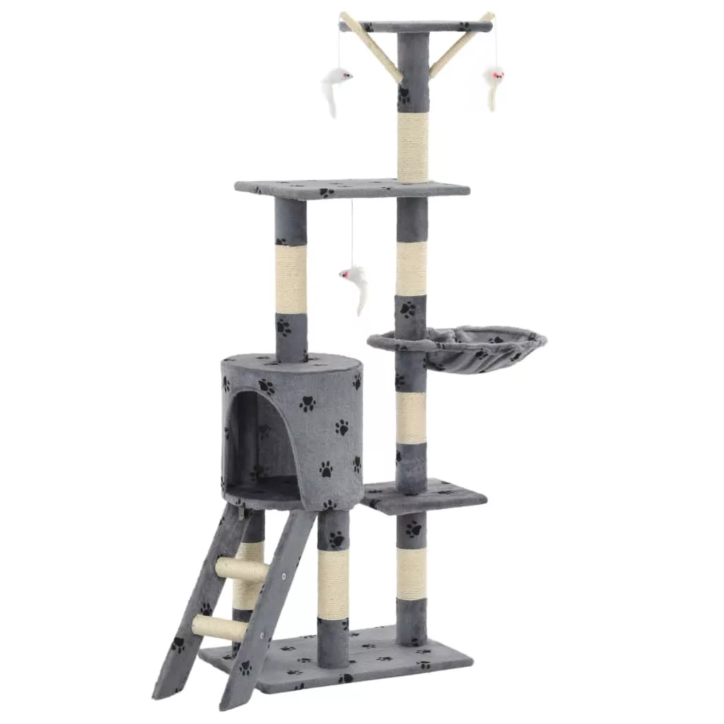 A plüssel kárpitozott kaparófák kényelmes szizálkötéllel vannak körbetekerve, így ideálisak arra, hogy szőrös kis barátja élesítse rajtuk a karmait. Macskái nagyon élvezni fogják, ahogy kergetik egymást, miközben le-fel ugrálnak erre a nagyszerű játszóközpontra. Macskabútorunk egy kényelmes házikóval is rendelkezik, ahol cicája alhat vagy pihenhet egy jót. Emellett 3 egeres játékkal, emelvényekkel és pihenőrészekkel van ellátva, hogy kis kedvence mindig jól érezze magát. A macskabútor alja strapabíró és stabil.