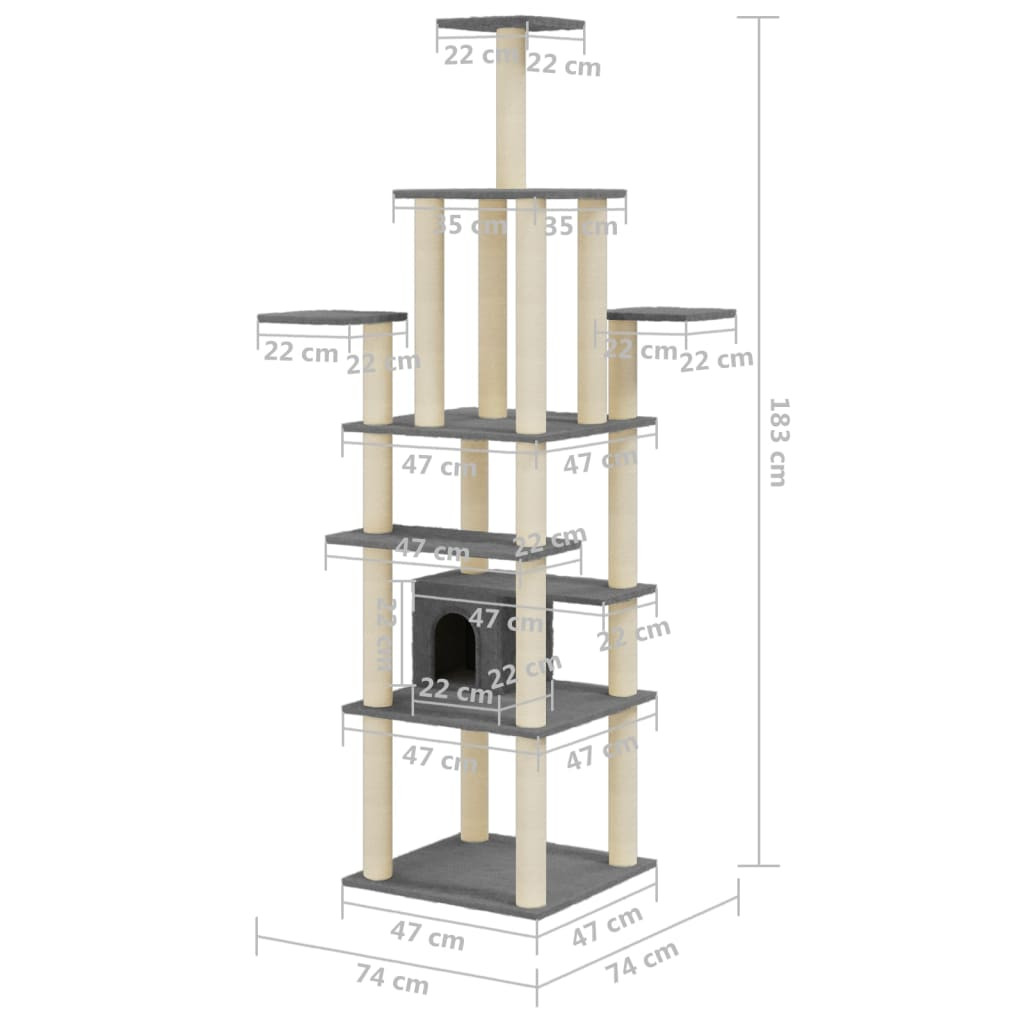 Szőrös kis kedvencei élesíthetik karmaikat a szizálkötéllel körbetekert kaparófákon, melyeken egészséges módon kiélhetik kaparóösztönüket. Élvezni fogják, ahogy kergethetik egymást, miközben fel-le ugrálnak ezen a szórakoztató játszóközponton. Ha már kijátszották magukat, kedvencei imádni fogják, hogy elheveredhetnek a felső pihenőkön, ahonnan még jobb kilátás vár rájuk. A komfortos házikóban akár el is bújhatnak, hogy szundítsanak egyet, vagy kiereszthetik a gőzt a kényelmes plüssheverőn.