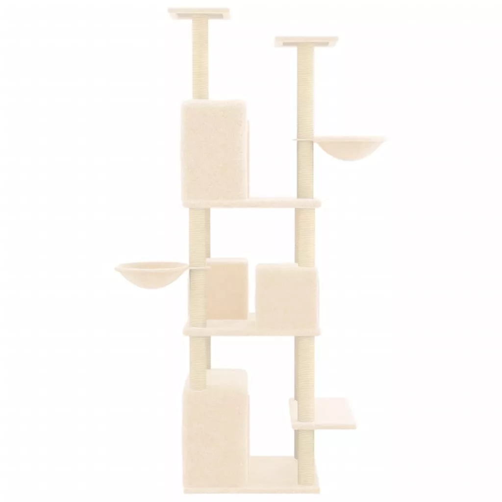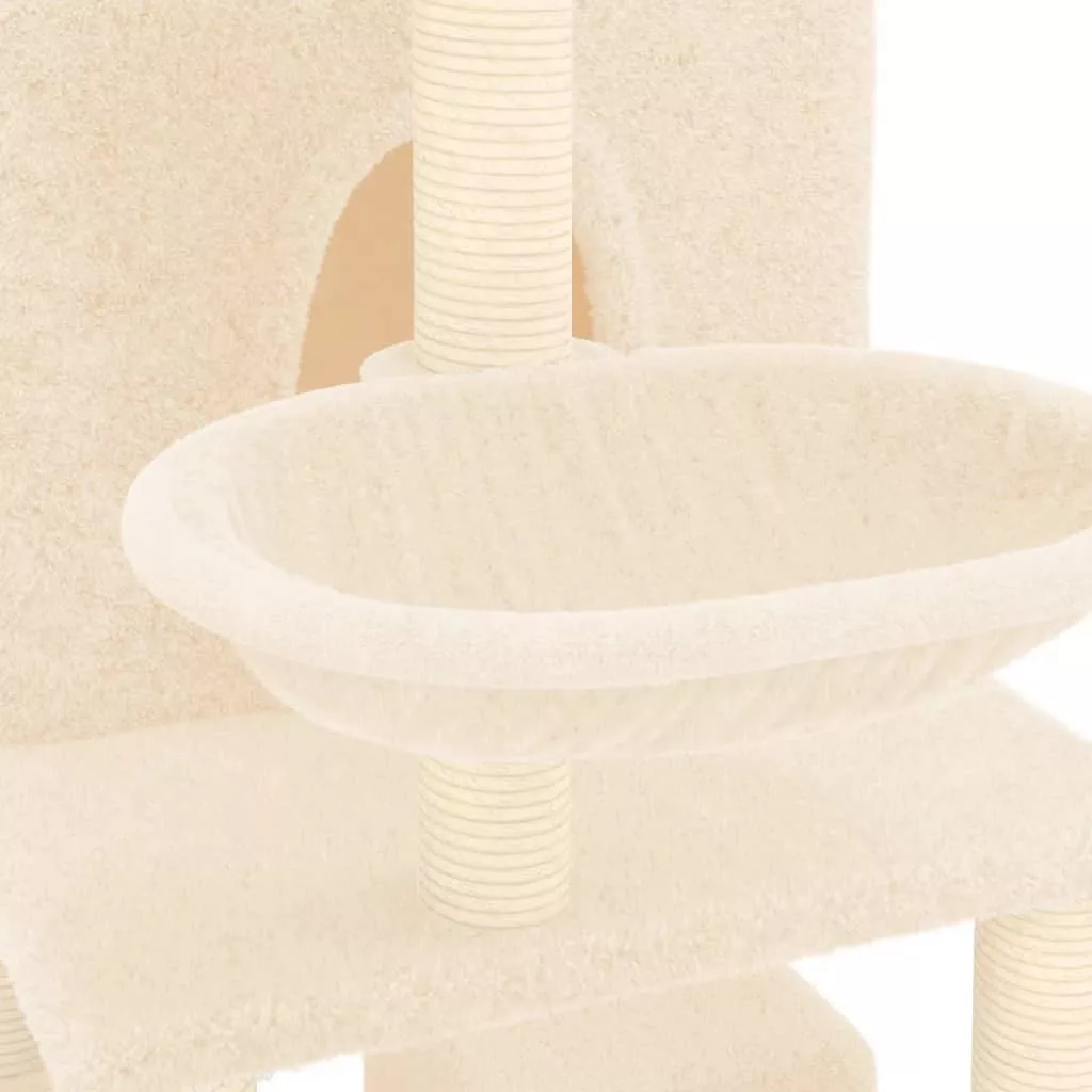 - Természetes szizáloszlopok: A kaparófa rugalmas és erős, természetes szizáloszlopai tökéletesek szeretett macskái számára, hogy kielégítsék kaparóösztönüket, és ne a bútorait karcolják meg.
